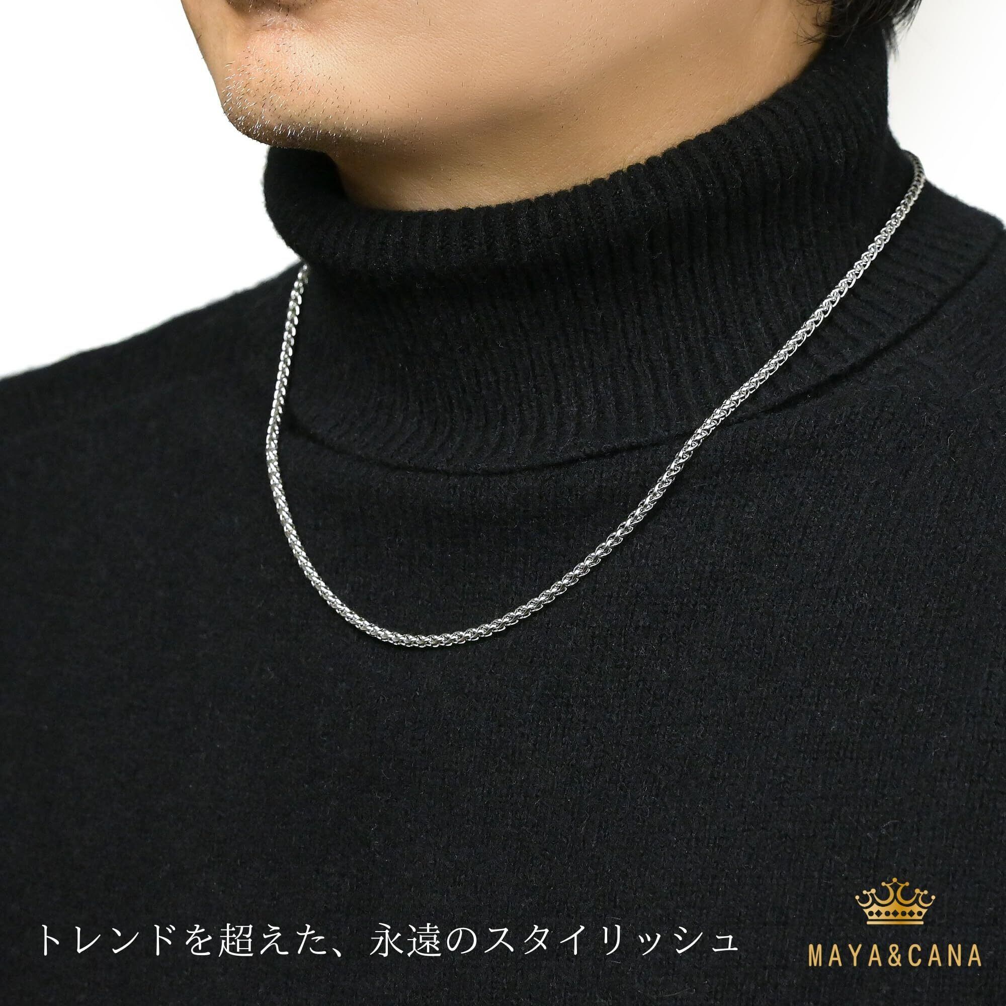 [MAYA&CANA] 磁気ネックレス メンズ 太さ3mm シルバー/ゴールド/虹 200MT サージカル ステンレス チェーン44~59cm
