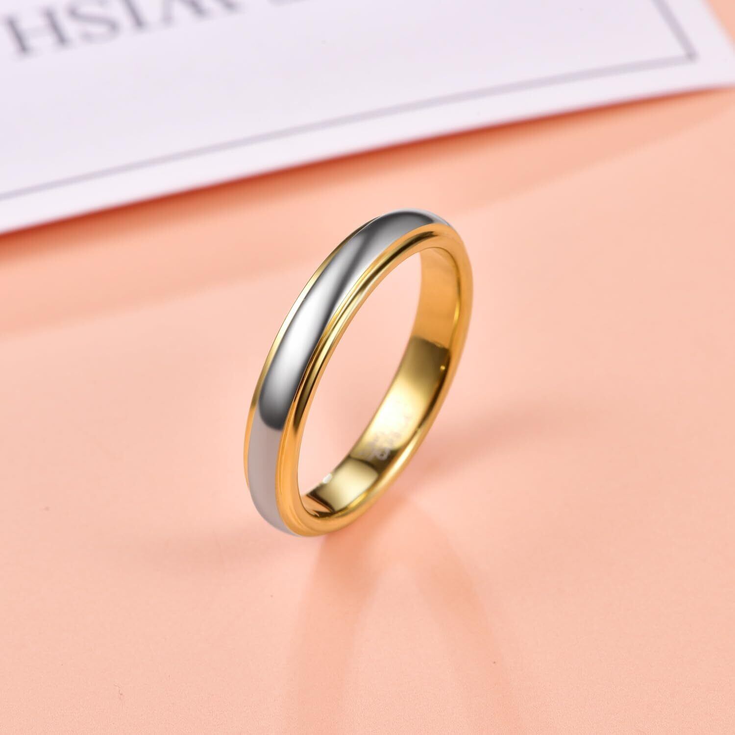 [Nuncad(ヌンカド)] 指輪 メンズ リング タングステン ドーム型 男女兼用 シンプル かっこいい ファッション アクセサリー カラー:ゴールド&シルバー 幅:4mm 23号