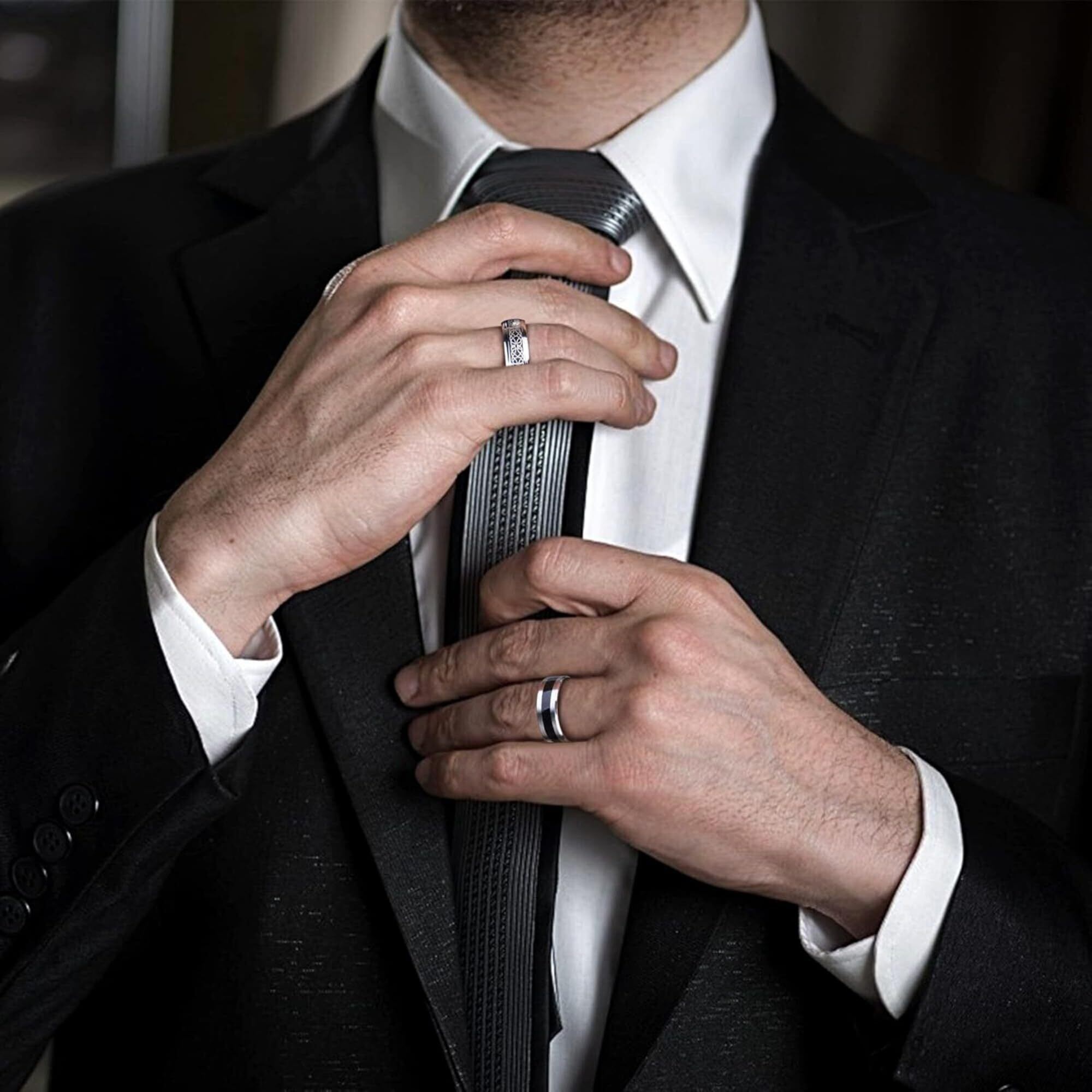【新着商品】[JeryWe] 6点 セット 指輪 メンズ シルバー ブラック リング シンプル 男性 イケメン バンド おしゃれ 人気 指輪 アクセサリー