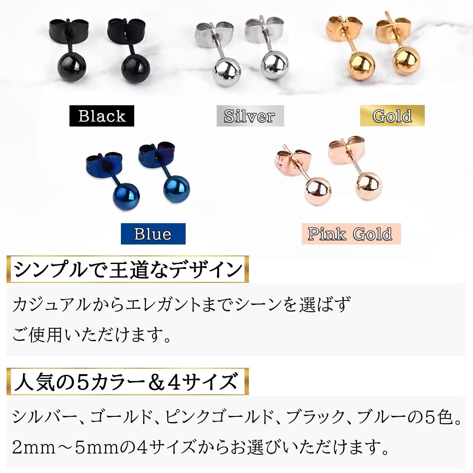 swars ピアス メンズ レディース サージカルステンレス 金属アレルギー対応 丸玉 ボール 両耳用 2個セット (silver 4mm)