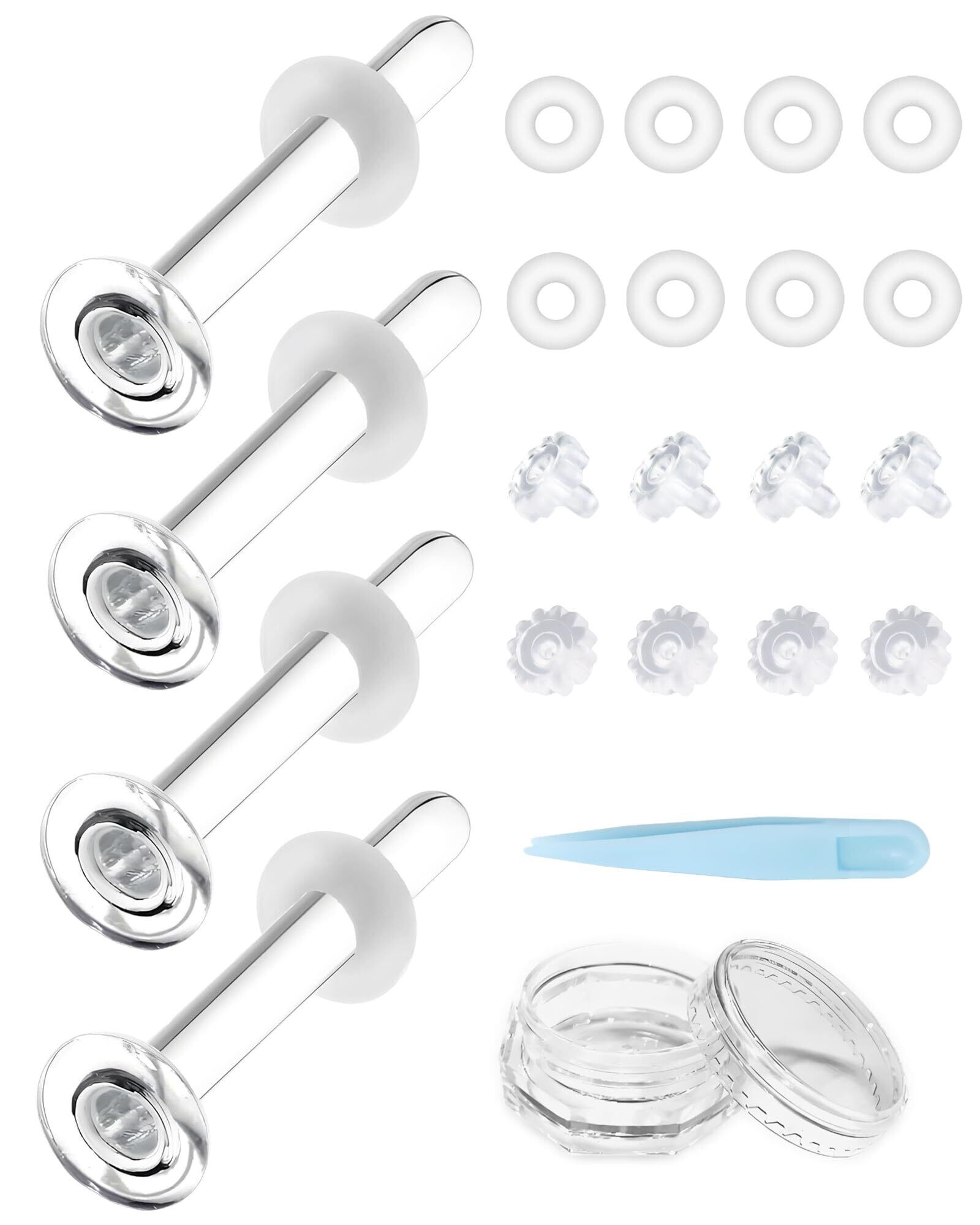 【在庫処分】透明ピアス ガラスピアス 強化ガラス【4本ピアス+8個花型キャッチ+8個oキャッチ】透明 ガラス ピアス 透ピ ファーストピアス ピアッサー 軟骨ピアス 軟骨ピアス へそピアス つけっぱなし 軟骨 キープ キャッチ 金属アレルギー対応 レディース メンズ