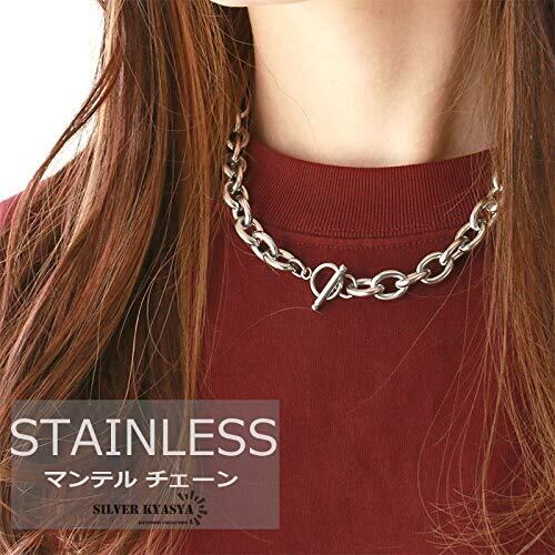[silver KYASYA]太幅 ステンレス チェーンネックレス メンズ レディース マンテル ネックレス シルバー 銀色 あずきチェーン シンプル ネックレス 50cm