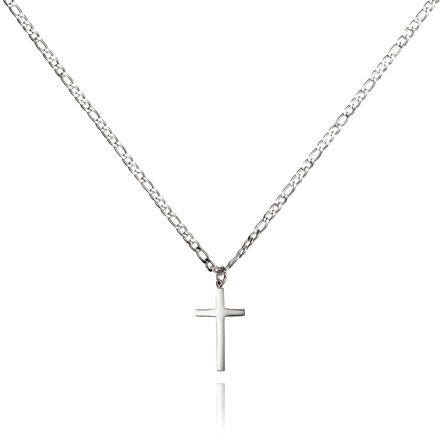 [Puente] ネックレス 金属アレルギー対応 サージカルステンレス ネックレス チェーン 鎖 チェーンネックレス 50cm 十字架 クロス クロスネックレス シルバー 銀色 小さい メンズ レディース 鏡面 シンプル フィガロチェーン (クロス(十字架))