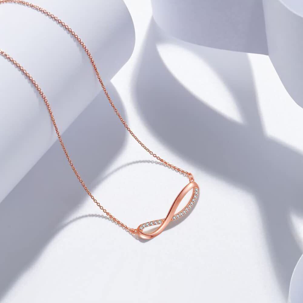 メビウス: このジルコニア ネックレスの無限のパターンは、あなたへの愛を無限のサイクルで宣言します。愛から始まり、永遠に、死ぬまで続きます