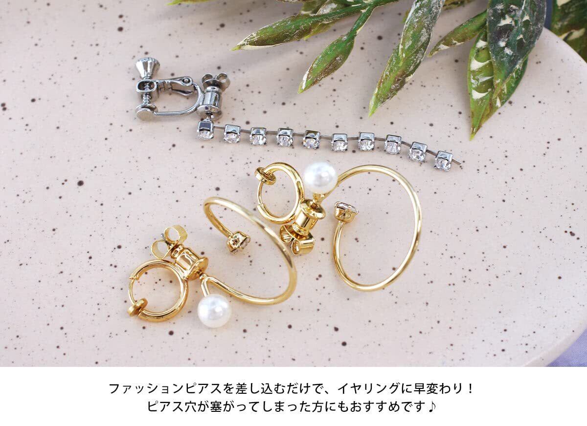 気に入っても着けられなかったファッションピアスが、差し込むだけでイヤリングとして着用できる便利アイテム。ピアス穴が塞がってしまった方にもおすすめです。