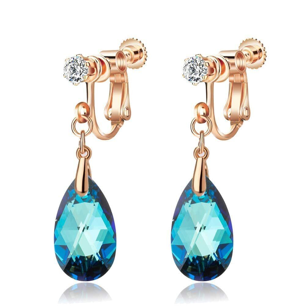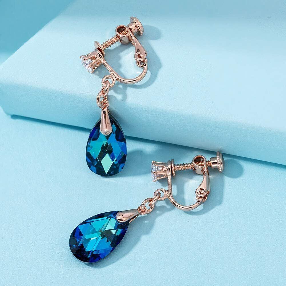 CHLOEOS イヤリング レディース 人気 ノンホールピアス 水滴 華奢 オーストリア クリスタル k18金 大人 可愛い 揺れる 金属アレルギー対応 ノンアレルギー 誕生日 記念日 母の日ギフト (ブルー)