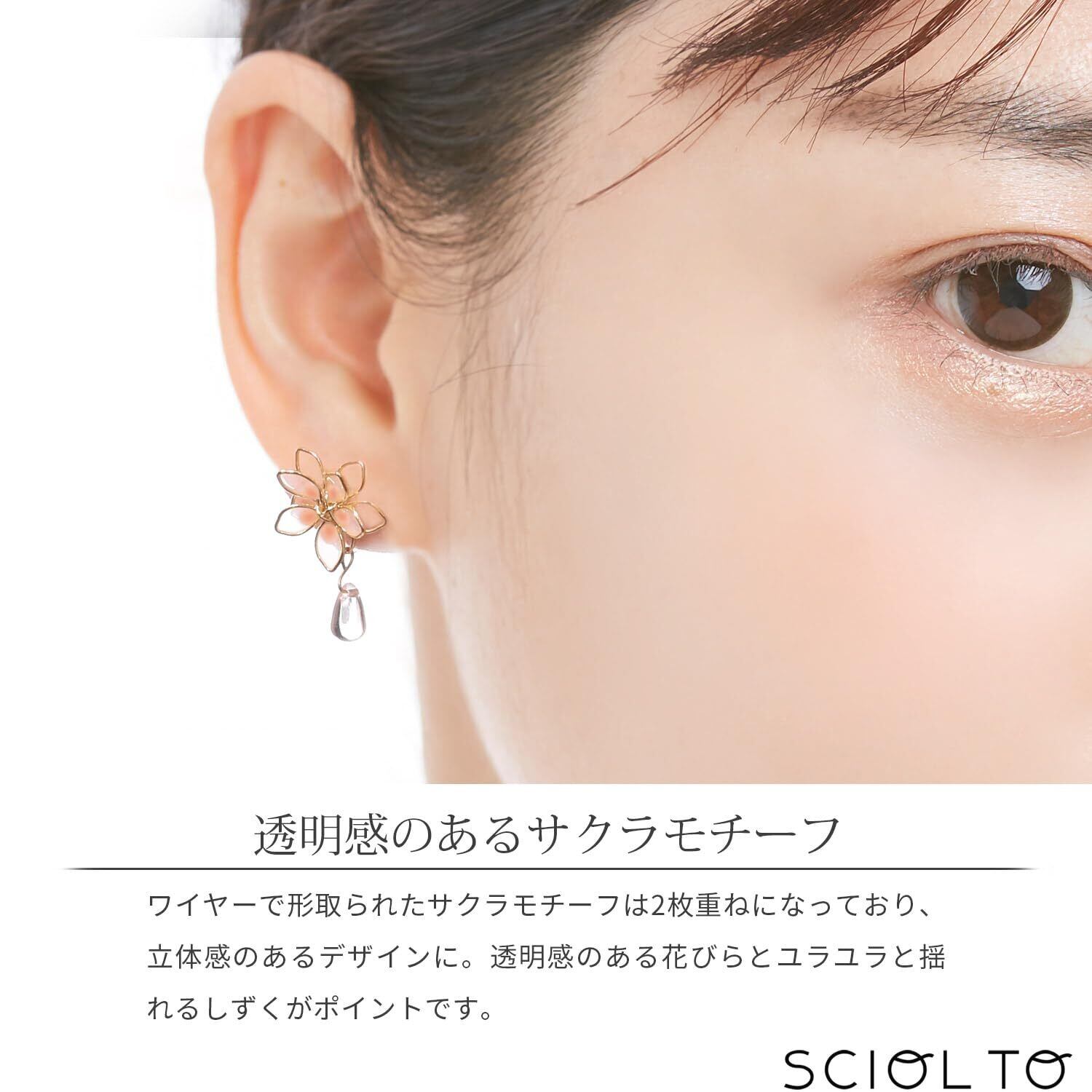 【在庫処分】[SCIOLTO] ピアス イヤリング レディース 桜ピアス 桜イヤリング [両耳 2個セット] 花 おしゃれ 可愛い 揺れる ジュエリー