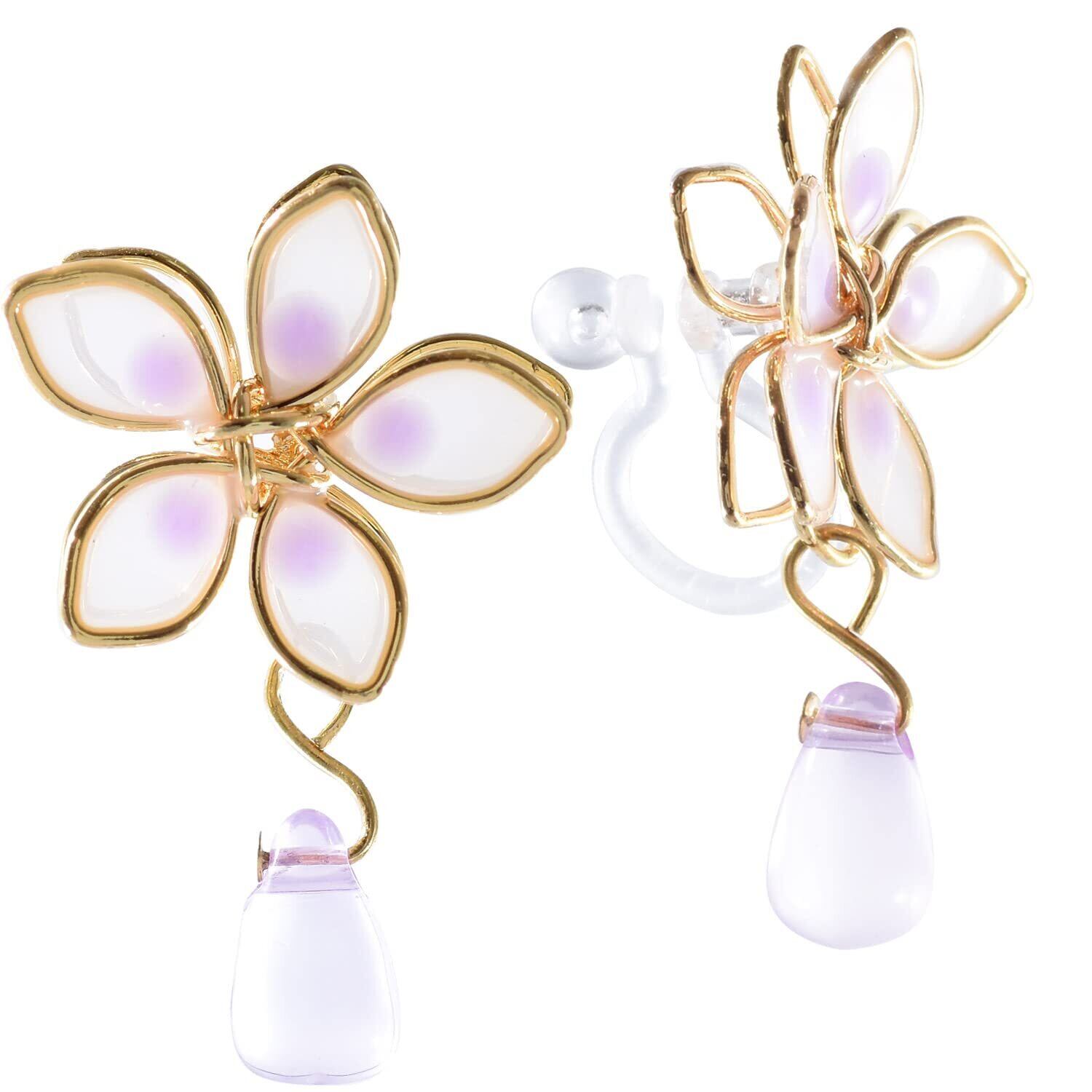 【耳元に花を咲かせるピアス&イヤリング】可憐な桜の花のデザインで女性らしさをプラスするフラワーモチーフのデザイン。 ふんわりとした雰囲気が一年中「春」を感じさせます。 職場や学校の規則で穴を開けられないという方にも気軽に着けて頂けるよう、イヤリングタイプとピアスタイプをご用意しました。 普段使いで差を付けるのはもちろん、パーティーシーンにもオススメ!