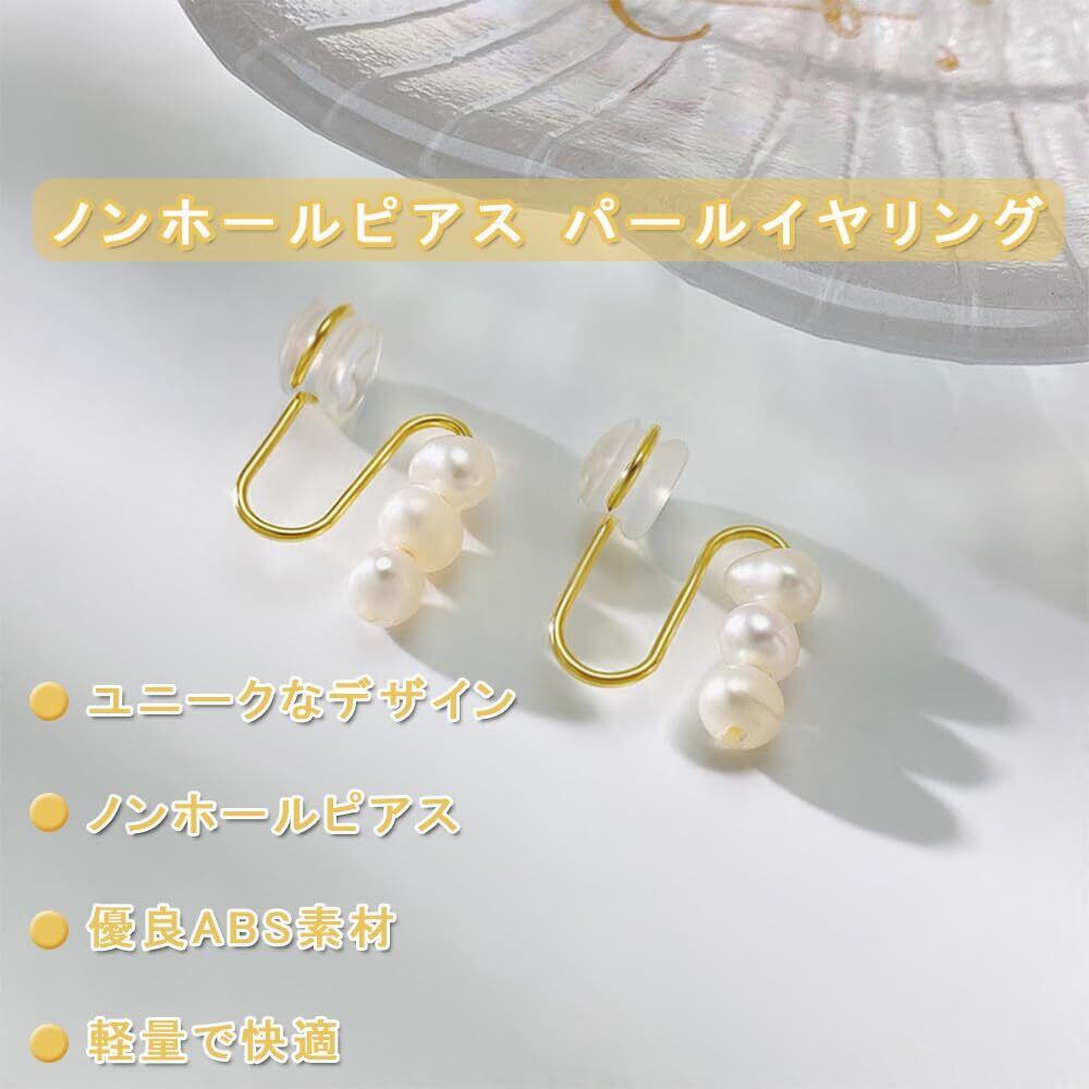 KALOLINNA ノンホールピアス パールイヤリング 3連 痛くない ノンホール 可愛い おしゃれ ホワイト ピアス穴不要 プレゼント 誕生日 女性
