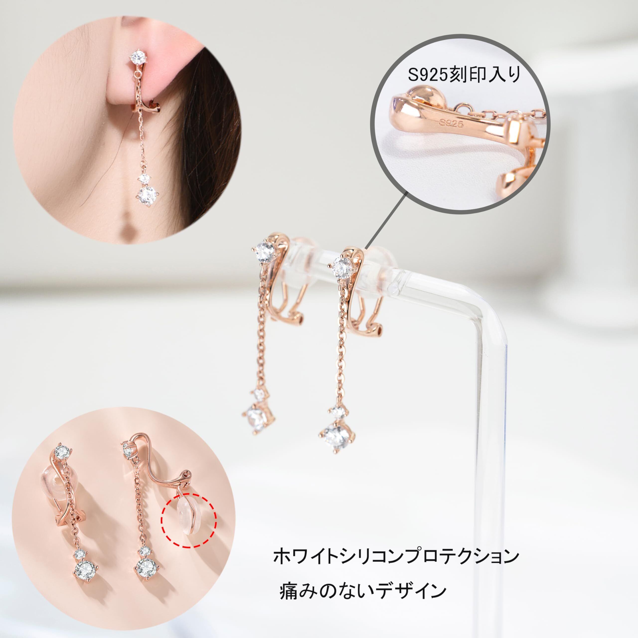 FH.bird 揺れる イヤリング レディース ピンクゴールド 金属アレルギー対応 シルバー925 痛くないイヤリング ロング 5A ジルコニア 誕生日 プレゼント 女性 ジュエリー オフィス 普段使い