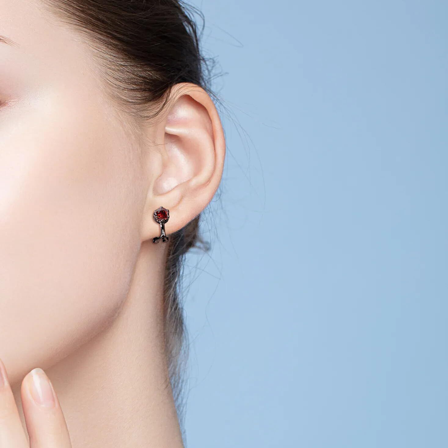 力強さとミステリアスさ:黒いクラウンと1月の誕生石ガーネットの組み合わせは、黒を基調としたクラウンデザインが、強さと美しさを兼ね備えた印象に。 ゴシックにもモードにも似合い、性別を問わず使えるユニークなデザイン