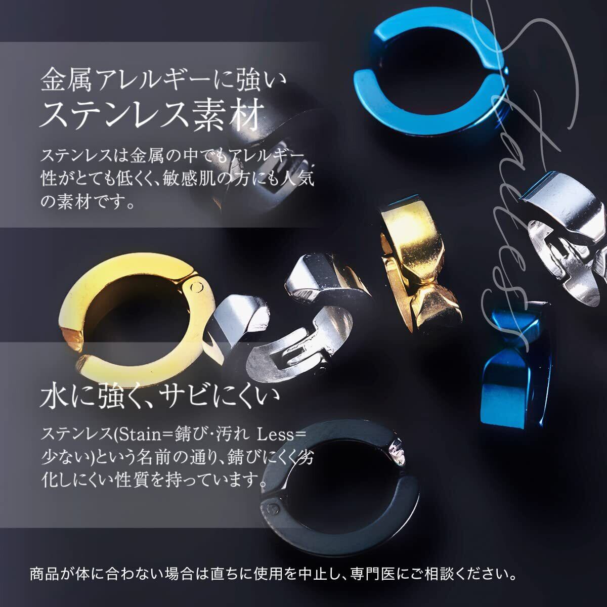 [Puente] フェイクピアス ステンレス メンズ レディース イヤリング イヤーカフ イヤカフ ピアス風 フープイヤリング 両耳セット シンプル フープ リング ノンホールピアス 太め 太い 9mm シルバー ゴールド ブラック ブルー
