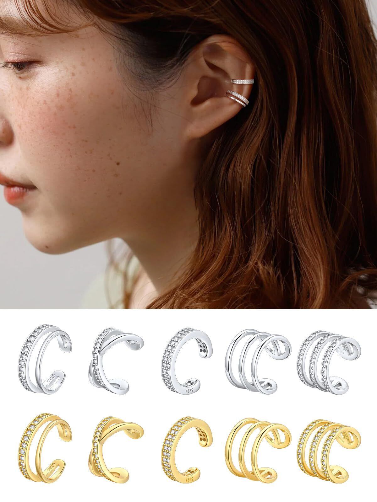 [ChicSilver] 片耳用 イヤーカフ レディース シルバー925 ジルコニア 痛くない イヤリング ノンホールピアス
