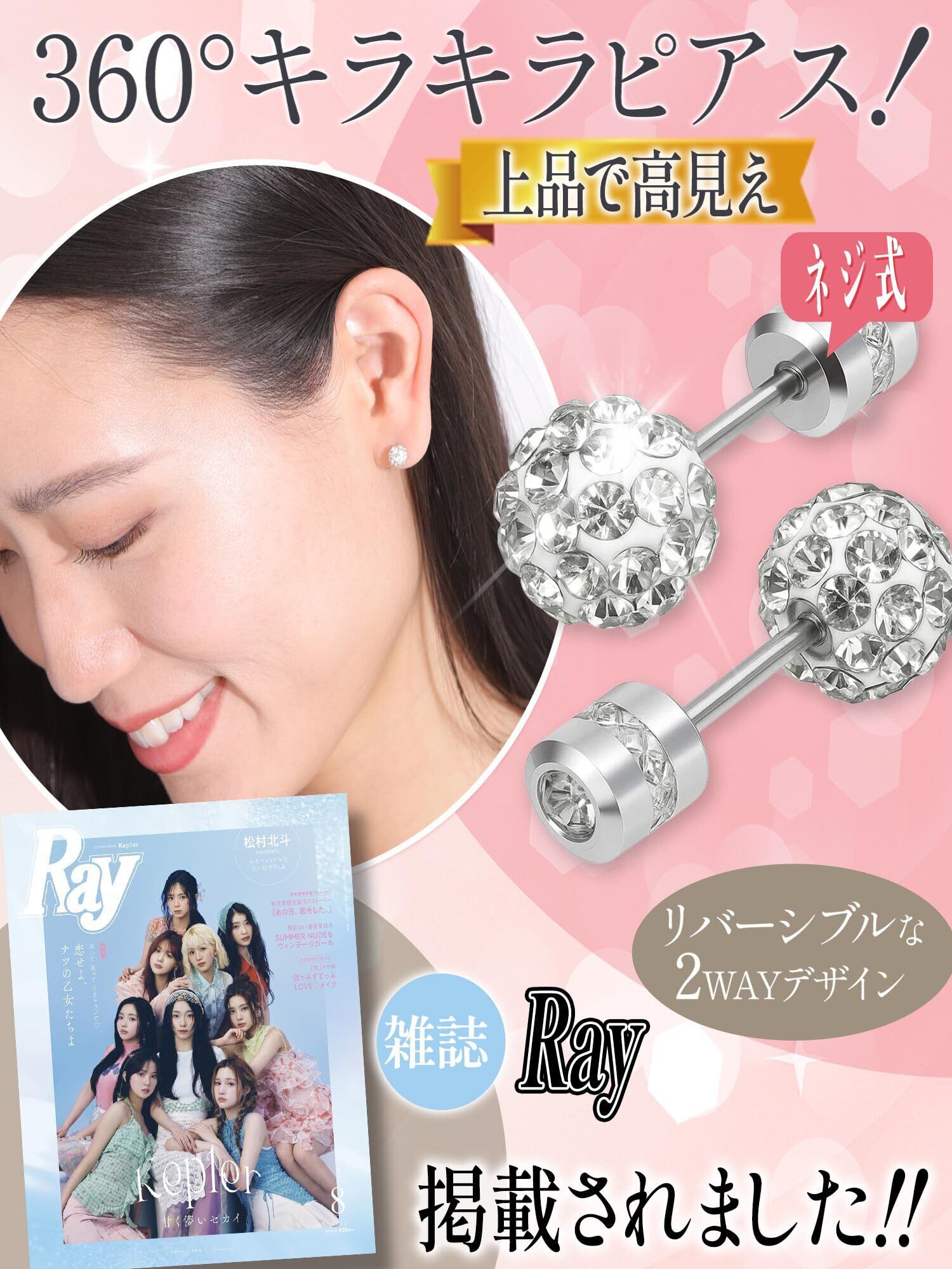 【ピアス つけっぱなし ファーストピアス】360度どこから見てもキラキラ つけっぱなしでも、ファーストピアスとして最適で、トラブルを未然に防ぎます。ネジ式のデザインにより落下の心配がなく、キャッチ部分が引っかからないため、日常生活でのストレスも軽減されます