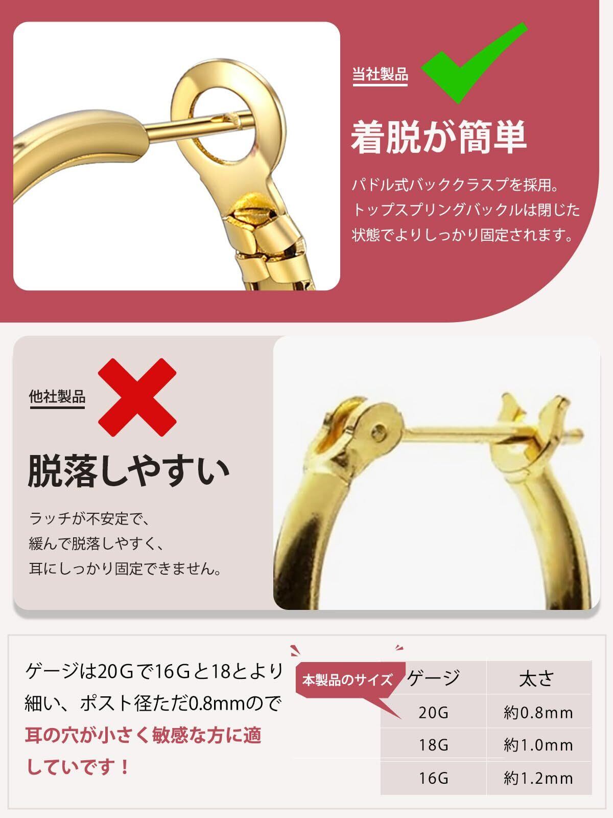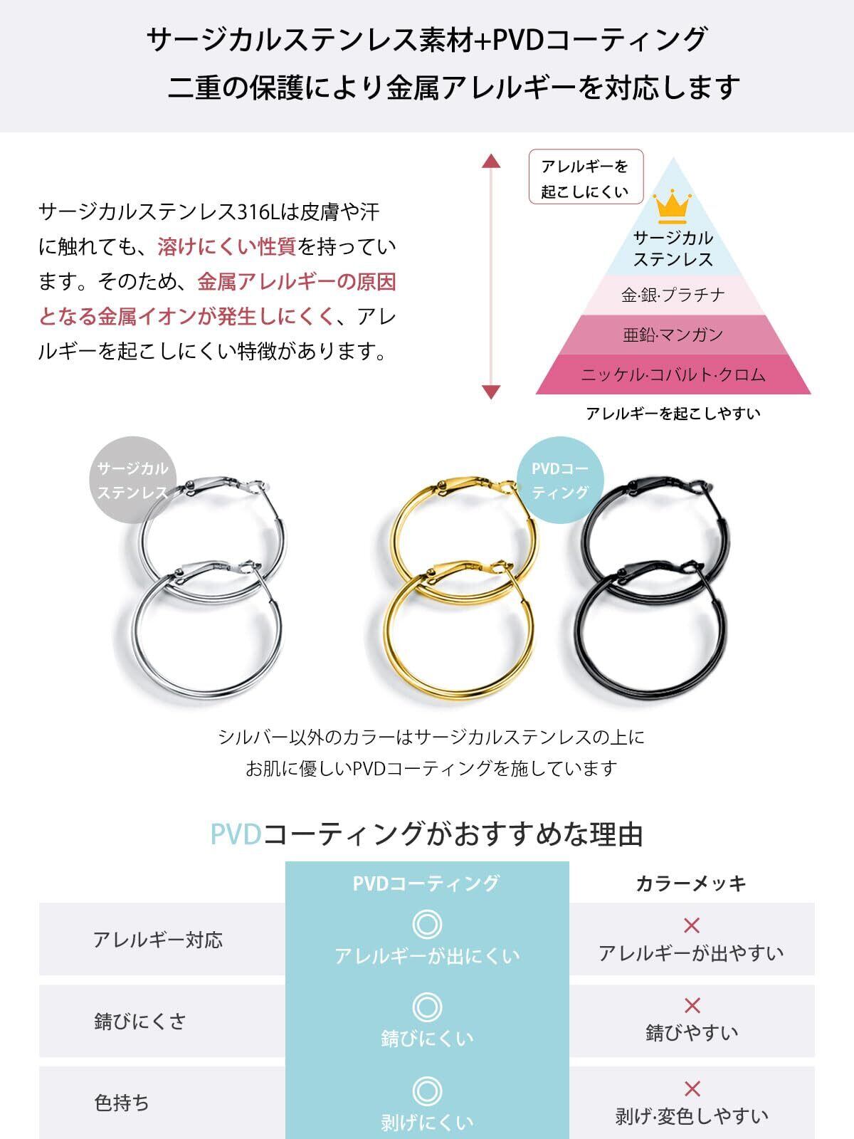 FOCALOOK フープピアス レディース 大きめ リングピアス サージカルステンレス 金属アレルギー対応 大きい 18K金 ゴールド シルバー 幅2mm 軽い 人気