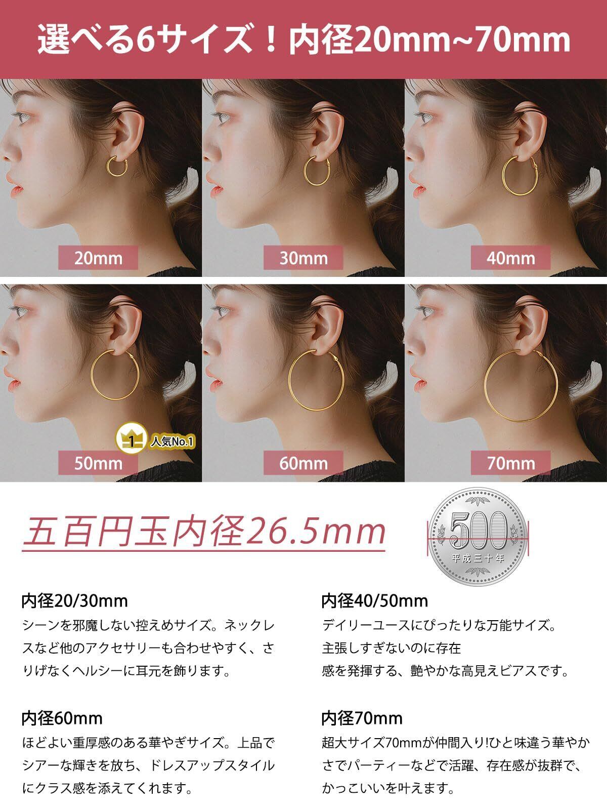 【5 種サイズ ×3 色展開、あらゆる選択をサポート】このピアスは30~70mm の 5 種類のサイズがあり、日常(やパーティーなど場面に合わせて選べます。ゴールド、シルバー、ブラックの 3 色があり、カジュアルからフォーマルまで多様な衣装にマッチし、個性を簡単に表現できます。重さ約:3.8g~10g、大きいけど、中空だから軽いです。