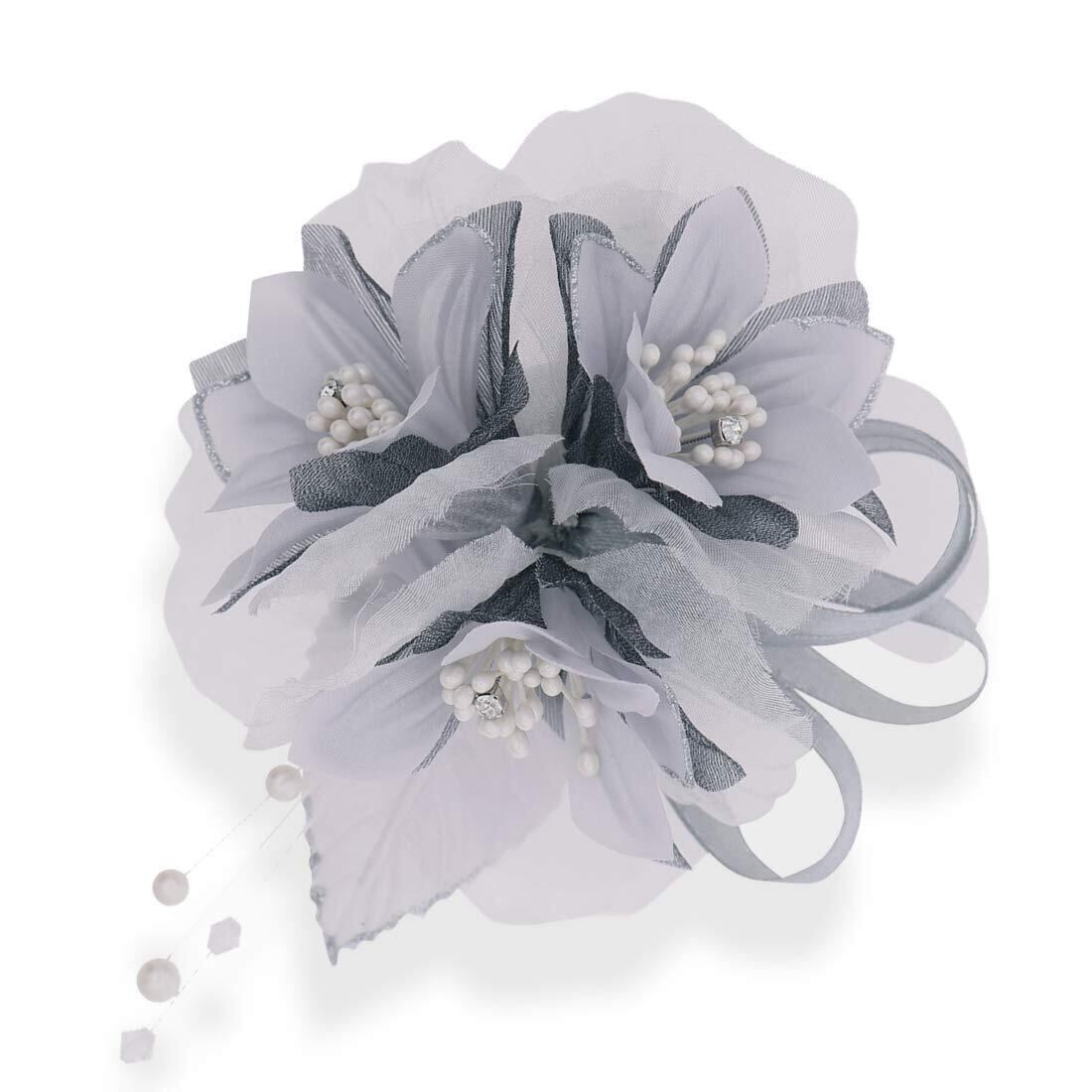 [クレインズコレクション] 手作り リリー コサージュ ブローチ 2WAY クリップ ピン フォーマル シーン や エレガント な装いに シルバー