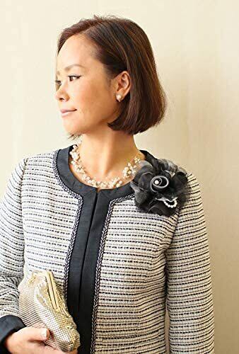 [鎌倉工芸] モノトーン ビジュー オーガンジー フラワー コサージュ