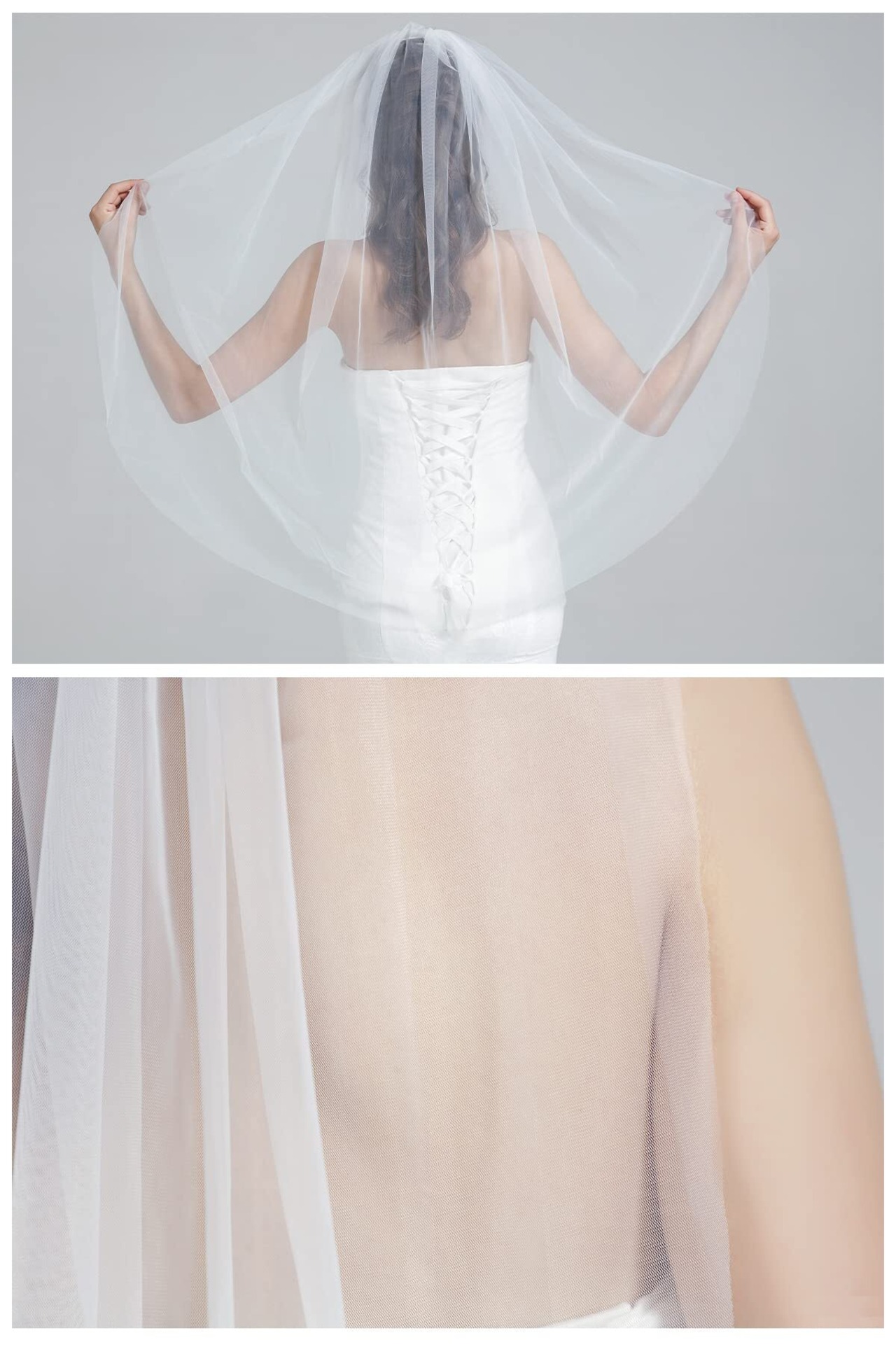 [BEAUTELICATE] ウエディングベール 櫛付き 花嫁ベール カットエッジ ソフトチュール ブライダル ロング ショート 結婚式 前撮り 優雅 シンプル