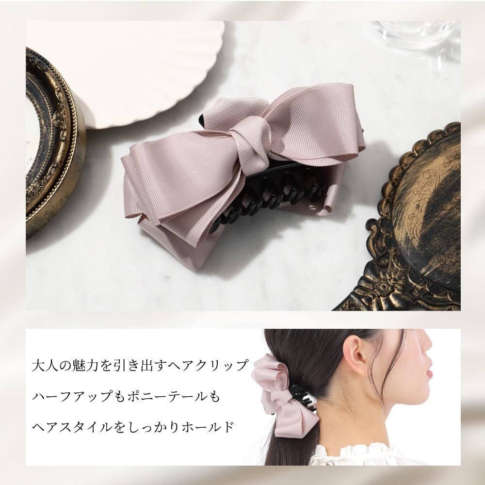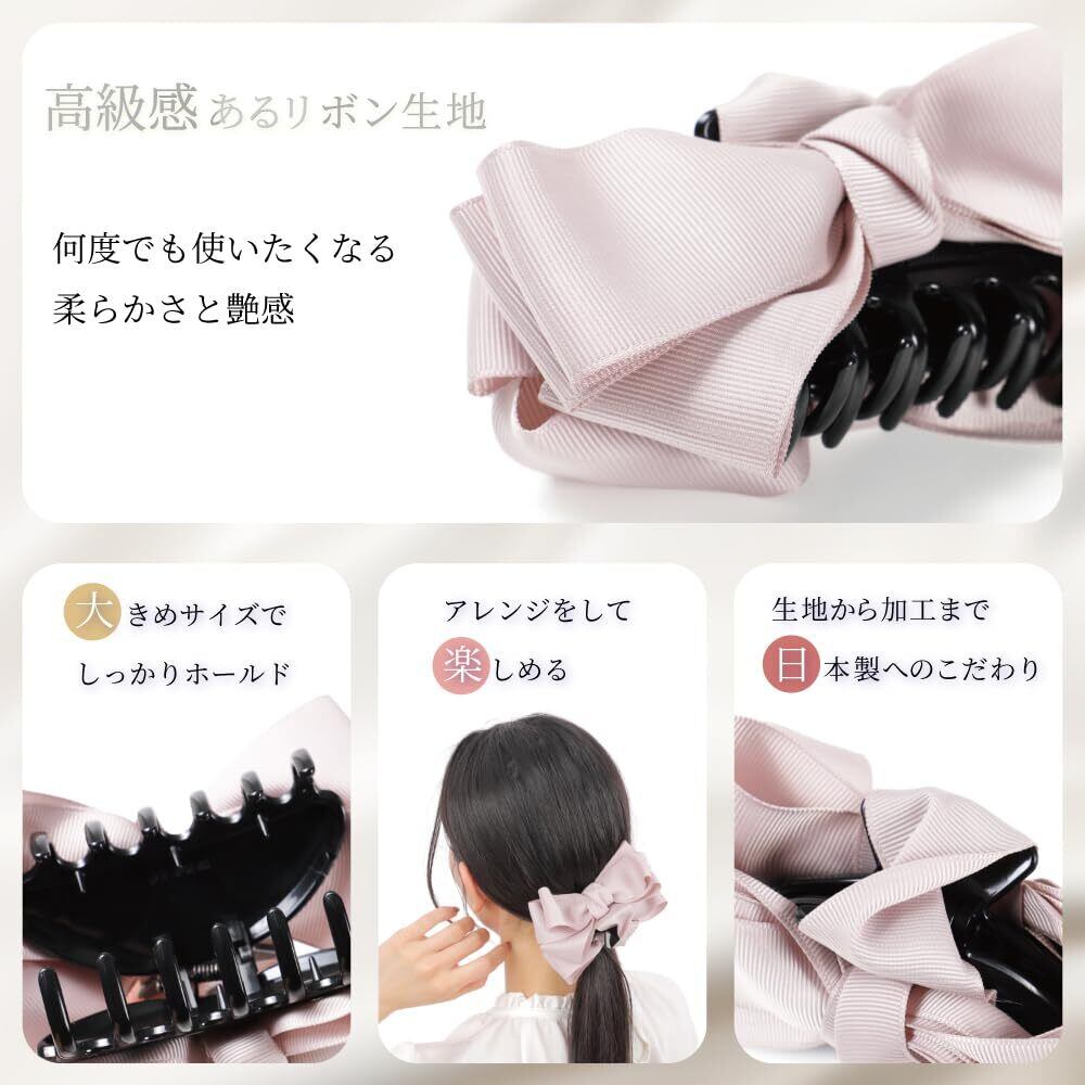【高級感あるリボン生地】日本製の高級感あるグログランリボンを使用し、リボン両面加工し、バンスクリップに仕上げました。ほつれないようフチを加工したリボン生地は、普段使いはもちろんのこと、オフィスやフォーマルの場でもお使いいただけます。