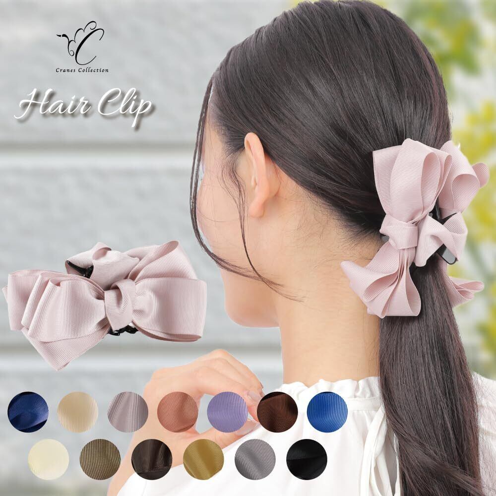 [クレインズコレクション] リボン バンスクリップ 日本製 デイリーで使える 大きめ 大人 ヘアクリップ 挟むだけ カジュアル フォーマル アレンジ 装飾 選べる13カラー GB284 (ライトパープル)