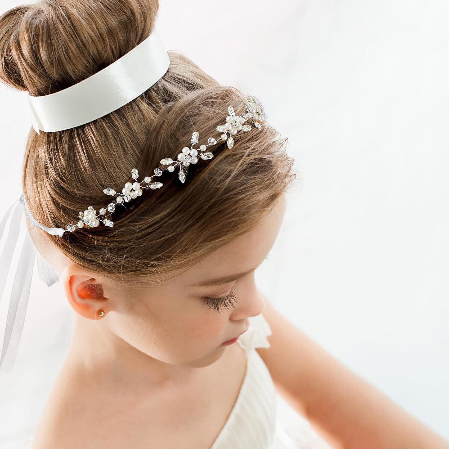 Matomtak 髪飾り 花 クリスタルビーズ パール 花かんむり リボン ホワイト ヘッドドレス 花冠 ヘアアクセサリー 子供 大人用 結婚式 披露宴 卒業式 パーティー ダンス 和装 撮影 入学式