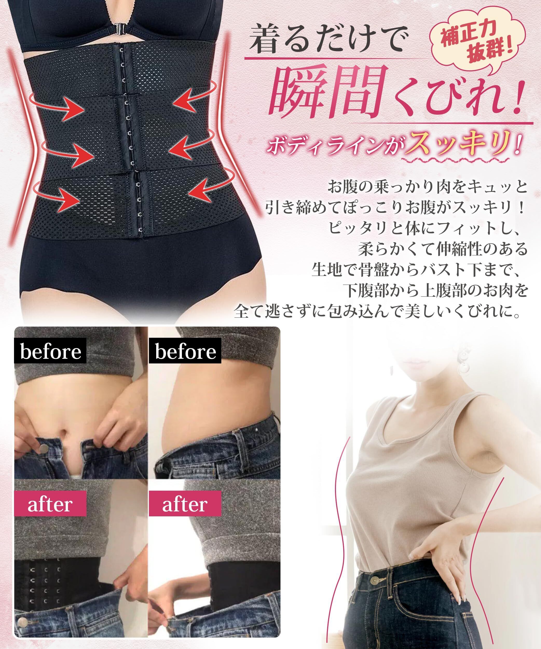 [Allanve] ウエストニッパー コルセット 【三段人間工学・8cm引き締め・二重加圧】 調節可能 三段フック 着圧 しっかりサポート くびれ レディース 下着 ロング 通気 伸縮 シェイプアップ ボディシェイパー