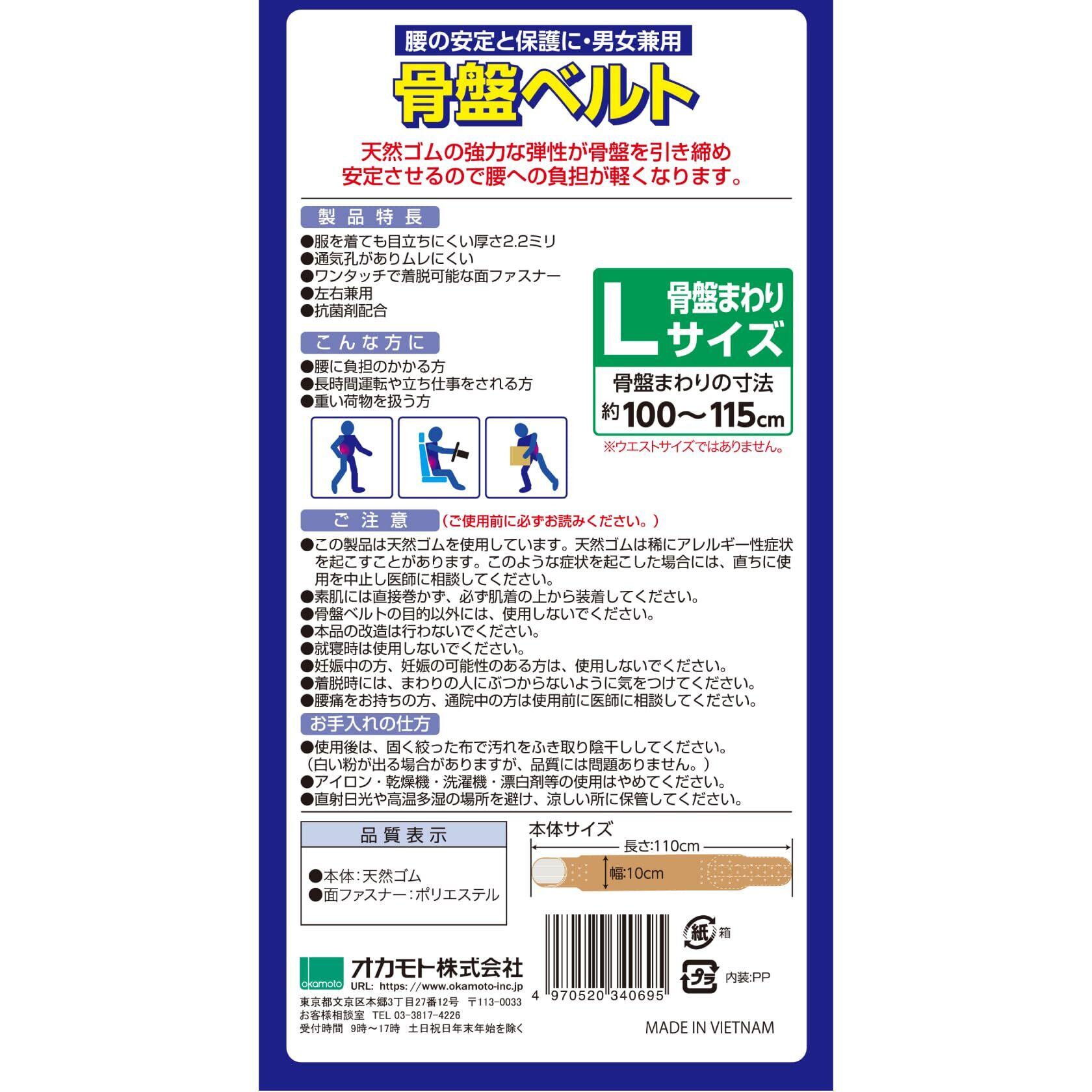 OKAMOTO オカモト 骨盤ベルト Lサイズ (骨盤まわりの寸法100~115cm) 日本製 抗菌剤配合 男女兼用