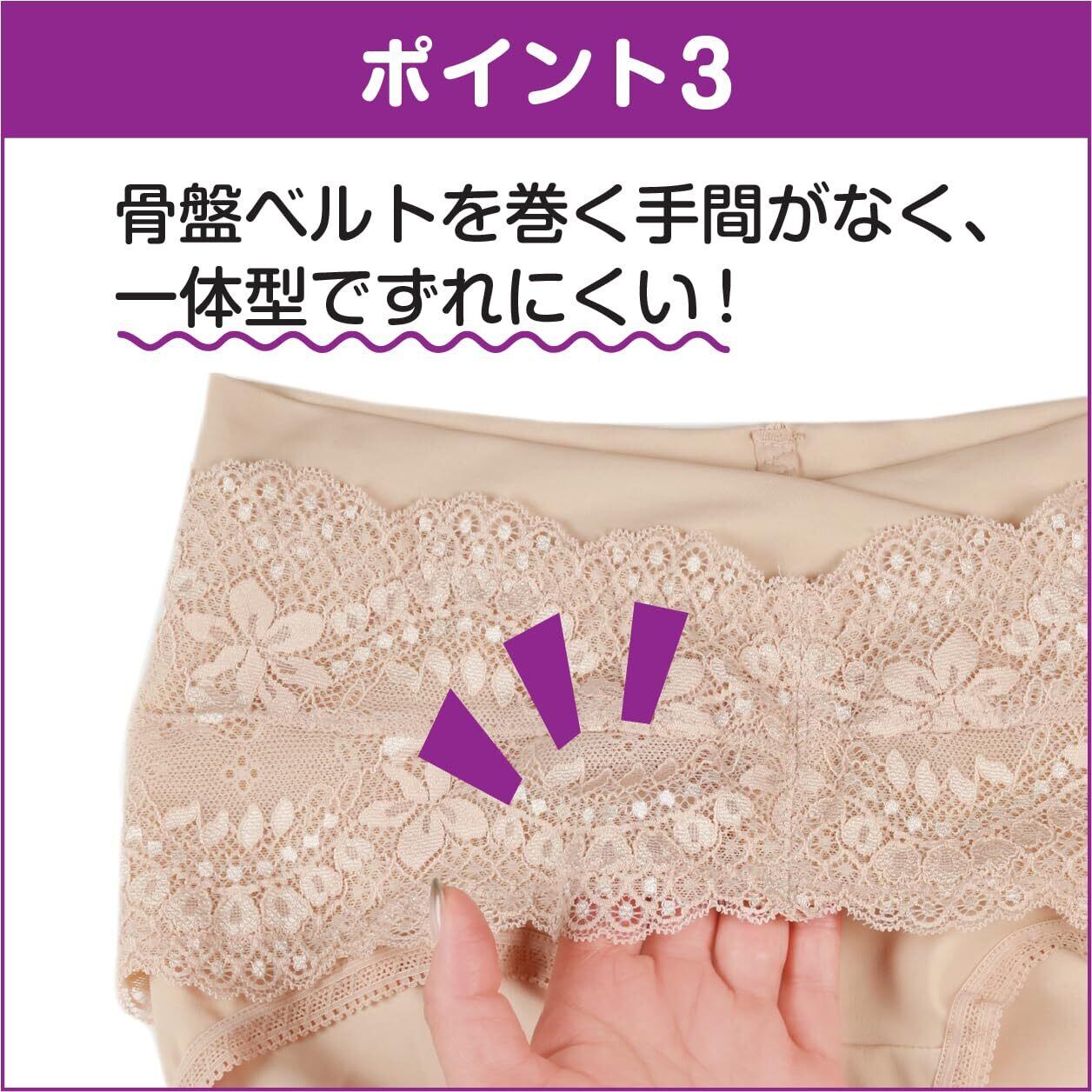 ショーツとベルトが一体になることでズレにくく、骨盤ベルトを巻く手間もかからないところがポイントです。