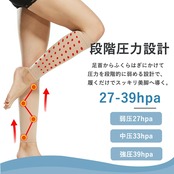 【段階圧力設計・昼夜兼用】普通のストッキングとは違い、特殊な編み方で、足首は39hPa、ふくらはぎは27hPa、足首からふくらはぎにかけて段階的に着圧値を設計することで、無理なく足へ圧をかけるので、日中はもちろん、就寝時に履くこともできます。締めつける範囲がニーハイタイプにより狭いので、締めつけで気分が悪くなりやすい人でも使える着圧ソックスです。着圧ストッキングにはじめてチャレンジする人にはおすすめのハイソックスタイプです。