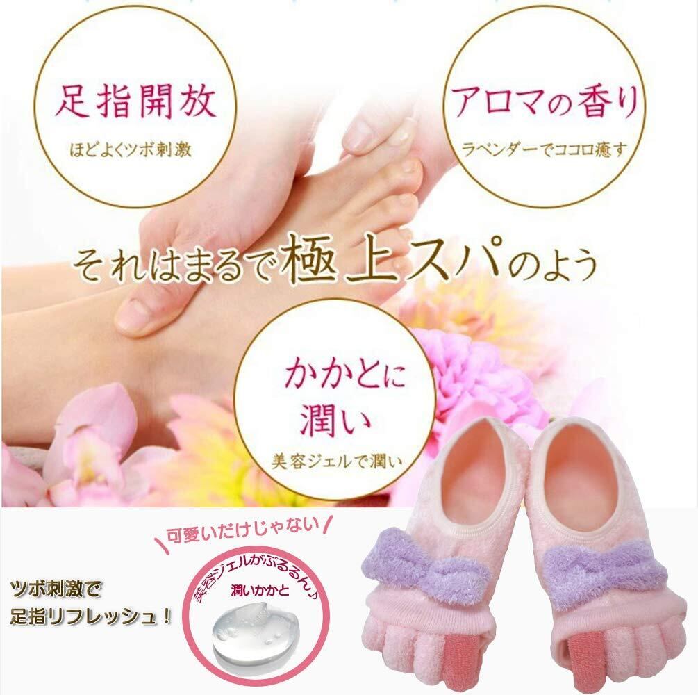 おやすみラクコ かかとケア ジェル付きソックス 足指開く広げる靴下 家で極上フットスパ hb001 (ピンク)