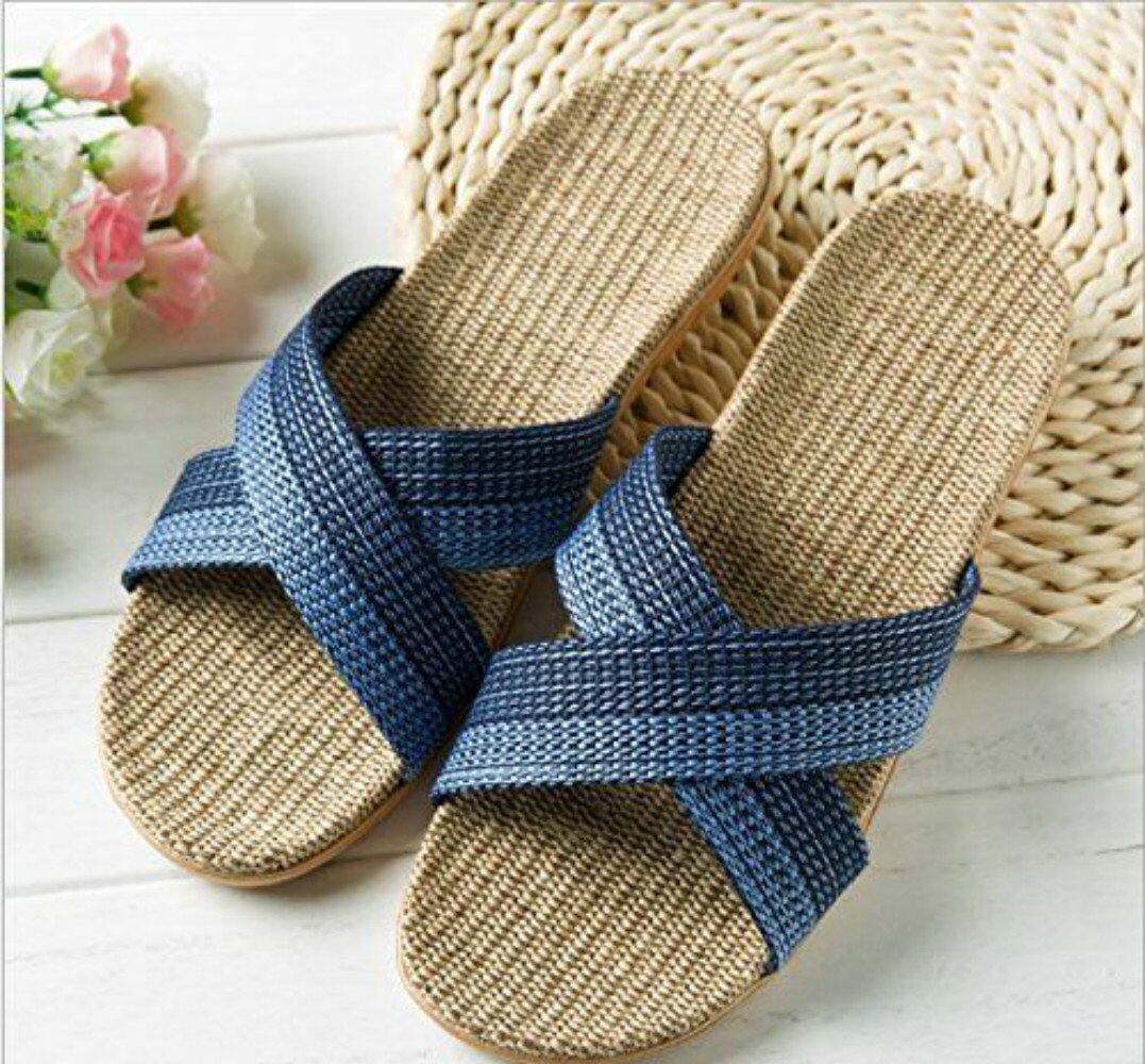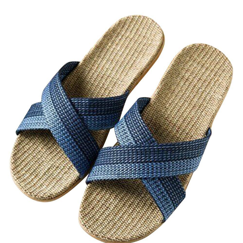 [Wazaza] 2018 室内履き替え ルームシューズ サンダル スリッパ 麻が呼吸するスリッパ お洒落で快適 リネンスリッパ ベーシック ボーダー 室内 麻