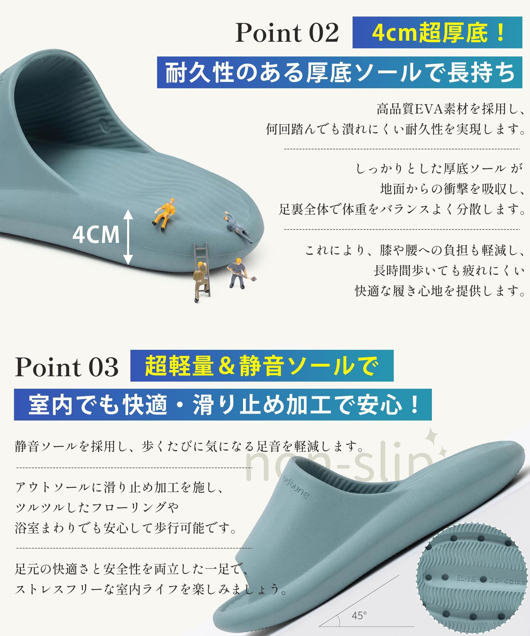 [AOY] 【現役理学療法士監修】スリッパ 室内 サンダル 【人体工学 × 足への負担軽減・4cm超厚底!】 すりっぱ ルームシューズ 超軽量 静音防滑 防水 柔らか 抗菌防臭 洗える EVA slippers