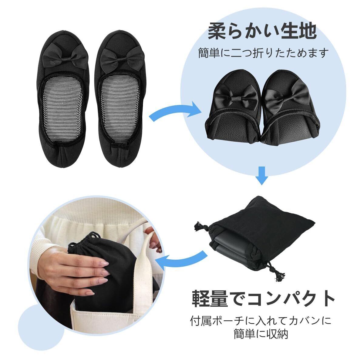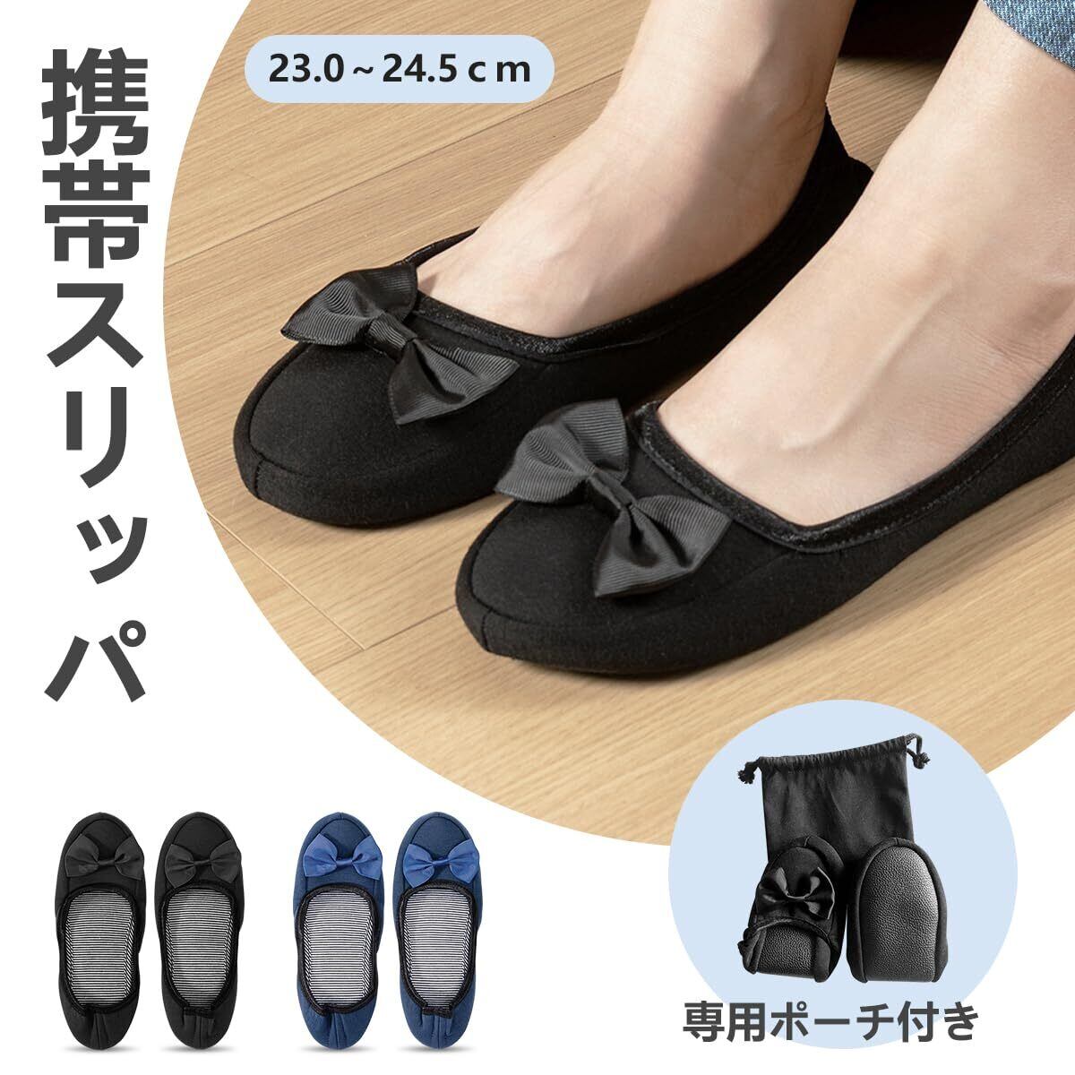 [amifun] 携帯用スリッパ レディース 23-24.5CM 折りたたみスリッパ 入学式 卒業式 洗濯可 ルームシューズ 防災 使い捨て ry旅行 コンパクト収納 専用ポーチ 蝶結び付き