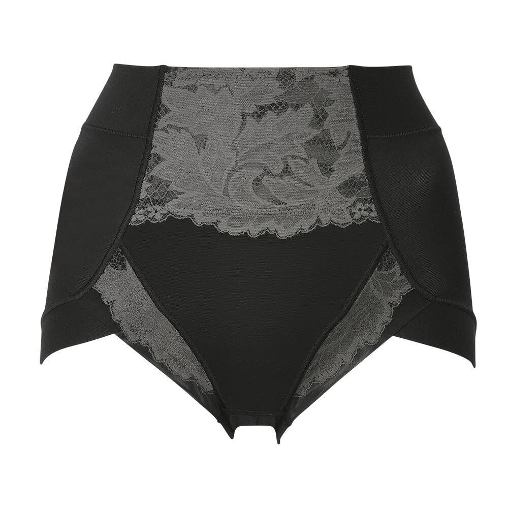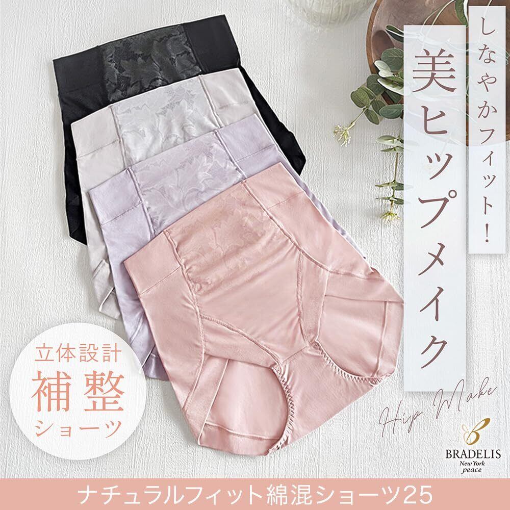 ●育乳ブラで有名な「ブラデリスニューヨーク」より「綿さらタッチ!ナチュラルフィットブラキャミ25」とセットでご使用頂けるショーツです。●おへそが隠れるぐらいのはきこみ丈でウエストからヒップ下まですっぽり包み込む安定感の高い補整ショーツ。●身生地のコットン混素材は、肌触りがよくオールシーズン、快適な着心地です。よく伸びて快適なフィット感で体の動きになじみやすく、おしりをソフトに補整(補正)してくれます。●フロント上辺はレース、シアーパワーネットを折り返した三重構造で下辺は身生地とシアーパワーネットの二重構造。程よい伸縮性で面でお腹を押さえてくれます。●ウエストの脇から後ろにかけては身生地を折り返した二重仕様。テープを使用せず、圧迫感を軽減。●足口はそけい部を圧迫しにくいクロス仕様。また足口パネルは身生地を二重にし、テープを使用していないので、食い込みにくくなっています。●ヒップは生地一枚仕様。生地のストレッチ性が高いので、ヒップの丸みをつぶさずにすっぽりと包み込んでくれます。●リーフ柄の光沢レースは春先を告げる新緑をイメージしたさわやかなデザイン。アウターに響きにくいフラットな仕上りです。【製品仕様】●クロッチ部 コットン100%(消臭機能あり)●転写ネーム●履きこみ丈 深め