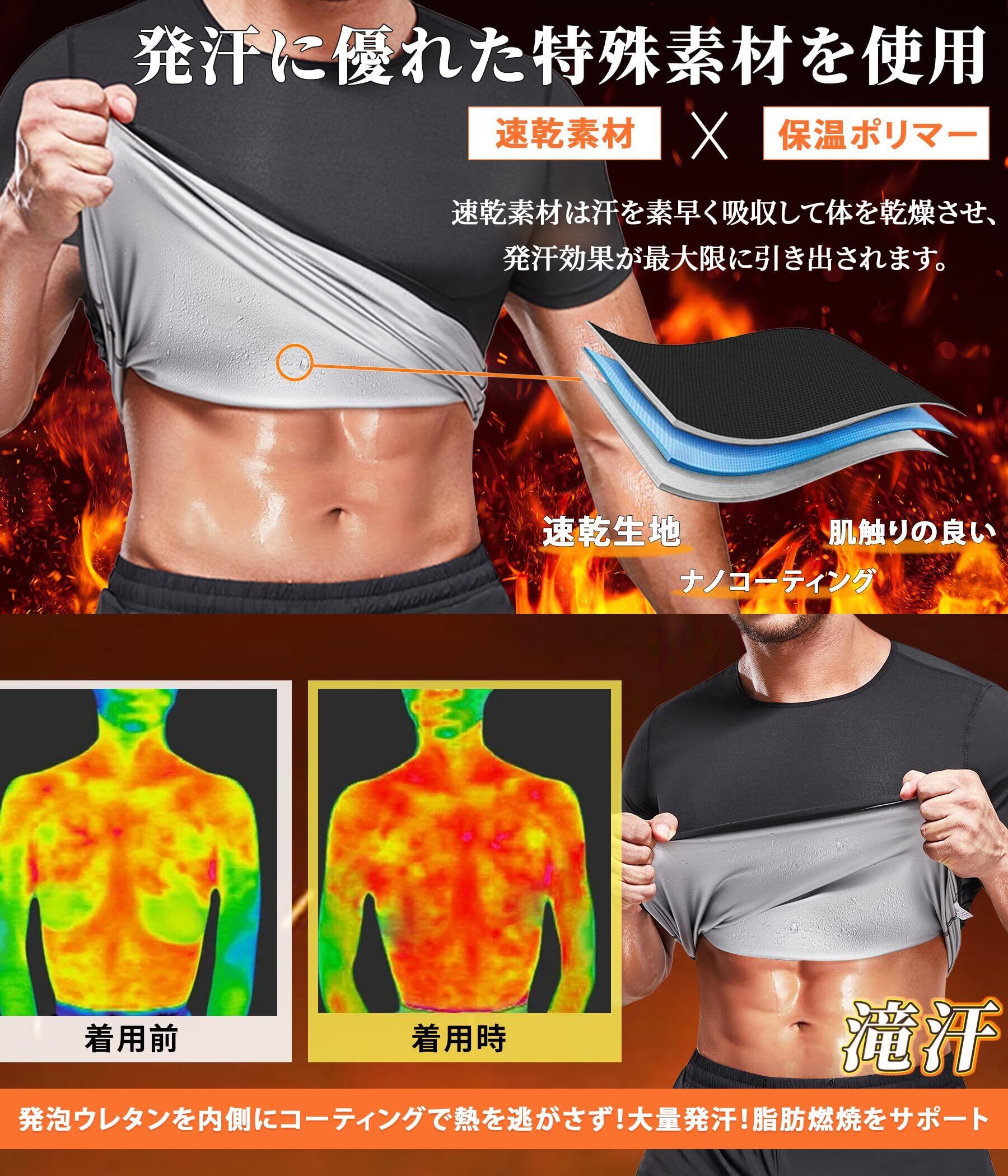 【数量限定】[Sawaiko] 背中 汗対策 サウナシャツ メンズ サウナボーイ 着るサウナ スポーツインナー メンズ 加圧シャツ メンズ サウナ tシャツ