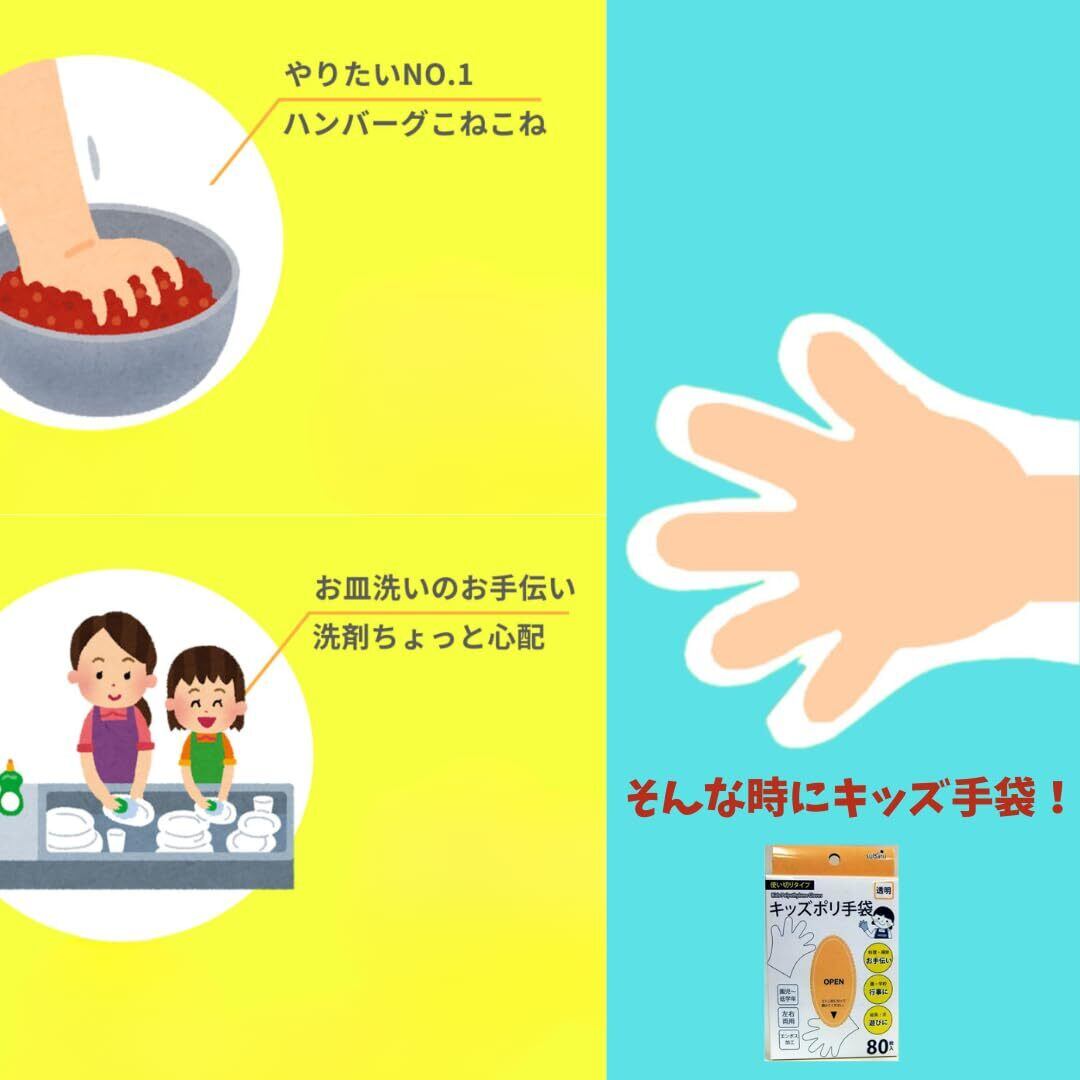 キッズポリ手袋 透明 80枚入り こども用 使い捨て お料理 お掃除 外遊び ペット