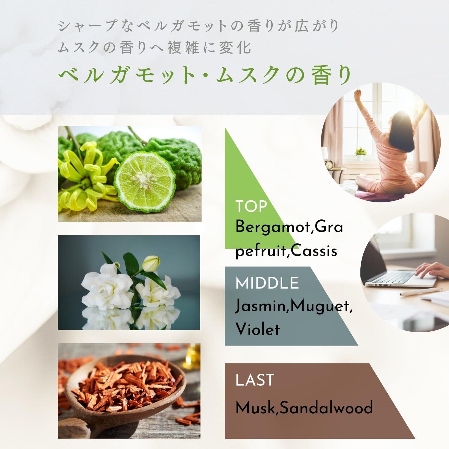 【使用方法】香水を手首に1〜2プッシュし馴染ませた後、首、耳裏などにつけて下さい。香りがもの足りない場合は、1プッシュずつ増やして調整して下さい。柑橘系やムスクなど香りの感じ方には個人差がございますのでご注意ください