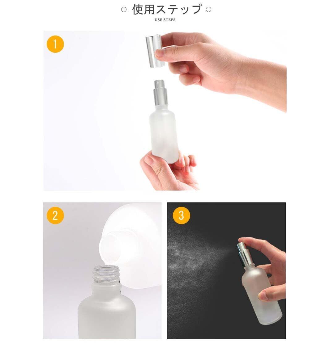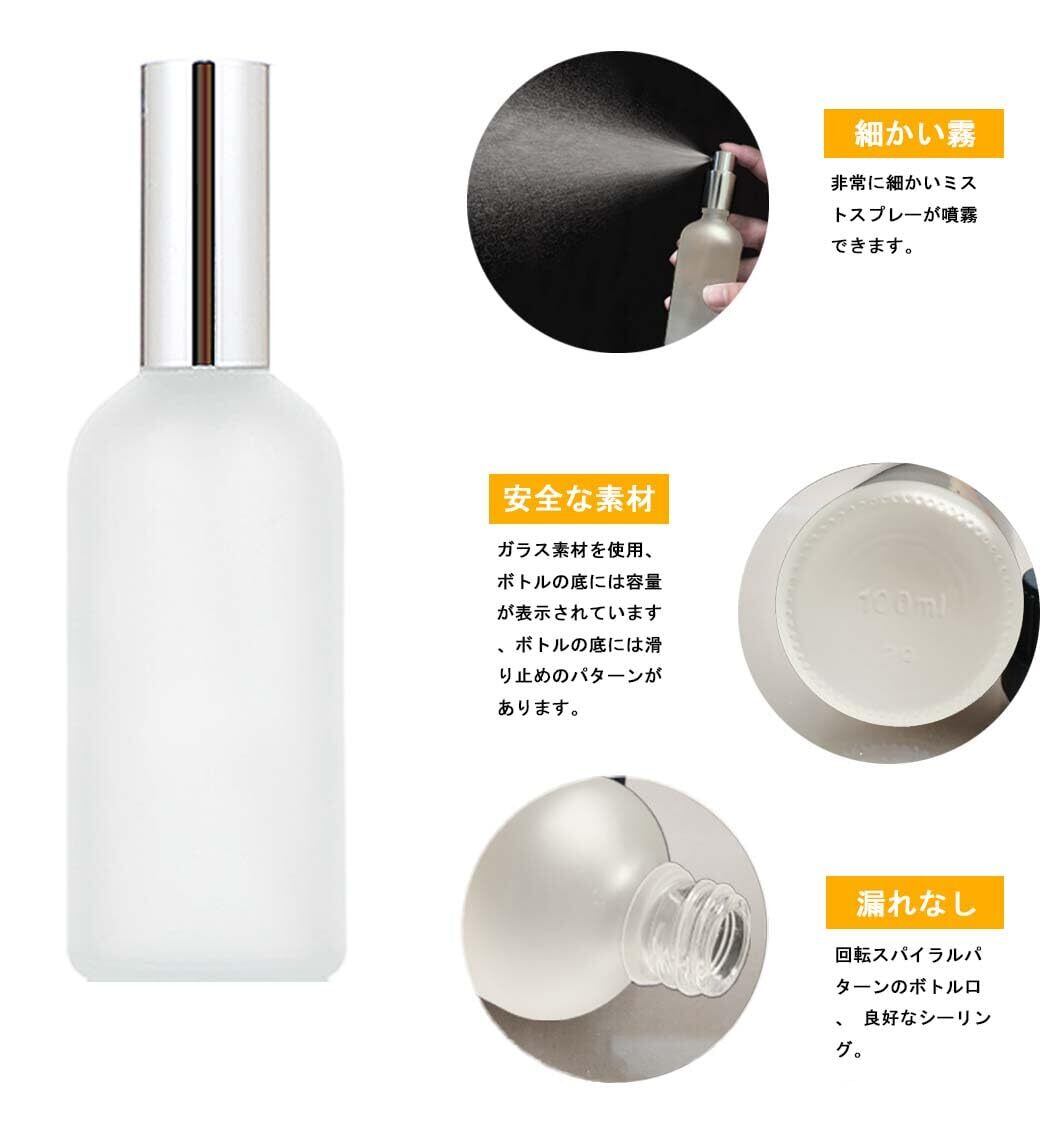 【安全小分けボトル】スプレーボトル4本、容量:100ml、素材:ガラス。アルコール、香水、エッセンシャルオイルなどの液体を保存でき、日常使いに便利です。