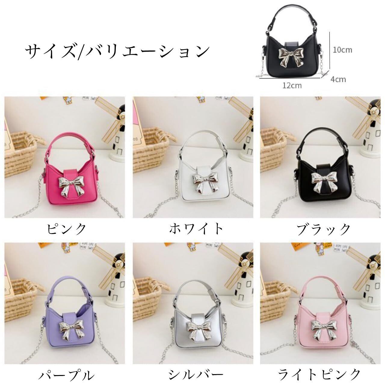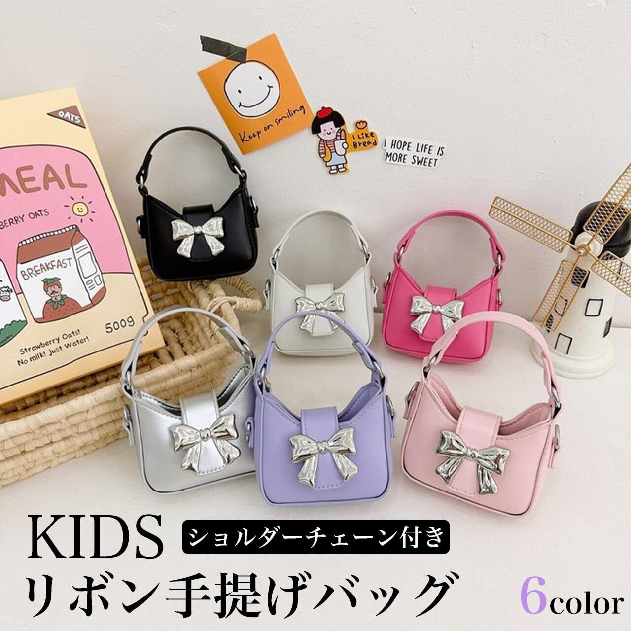 とっても可愛い子ども用リボンバッグは、6色のカラーバリエーションが魅力です。シルバーのリボンが付いた可愛らしいデザインがお洒落度をアップしてくれます。ショルダーチェーンが付いているため、肩掛けも手持ちも可能です。お出かけや旅行時に小物を持ち歩くのに最適です。