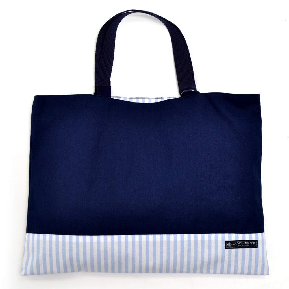 【特価セール】COLORFUL CANDY STYLE レッスンバッグ(リバーシブル) 絵本袋 手さげ おけいこバッグ 帆布・紺 × ベーシックストライプ・水色 N0171500