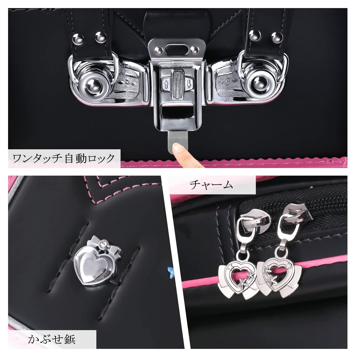 【新色!】ブラック+ピンク, 高級人工皮革,ホシとクラウンのモチーフを用いた、お姫様のような豪華な印象。6色展開でお好みの色をお選びいただけます。