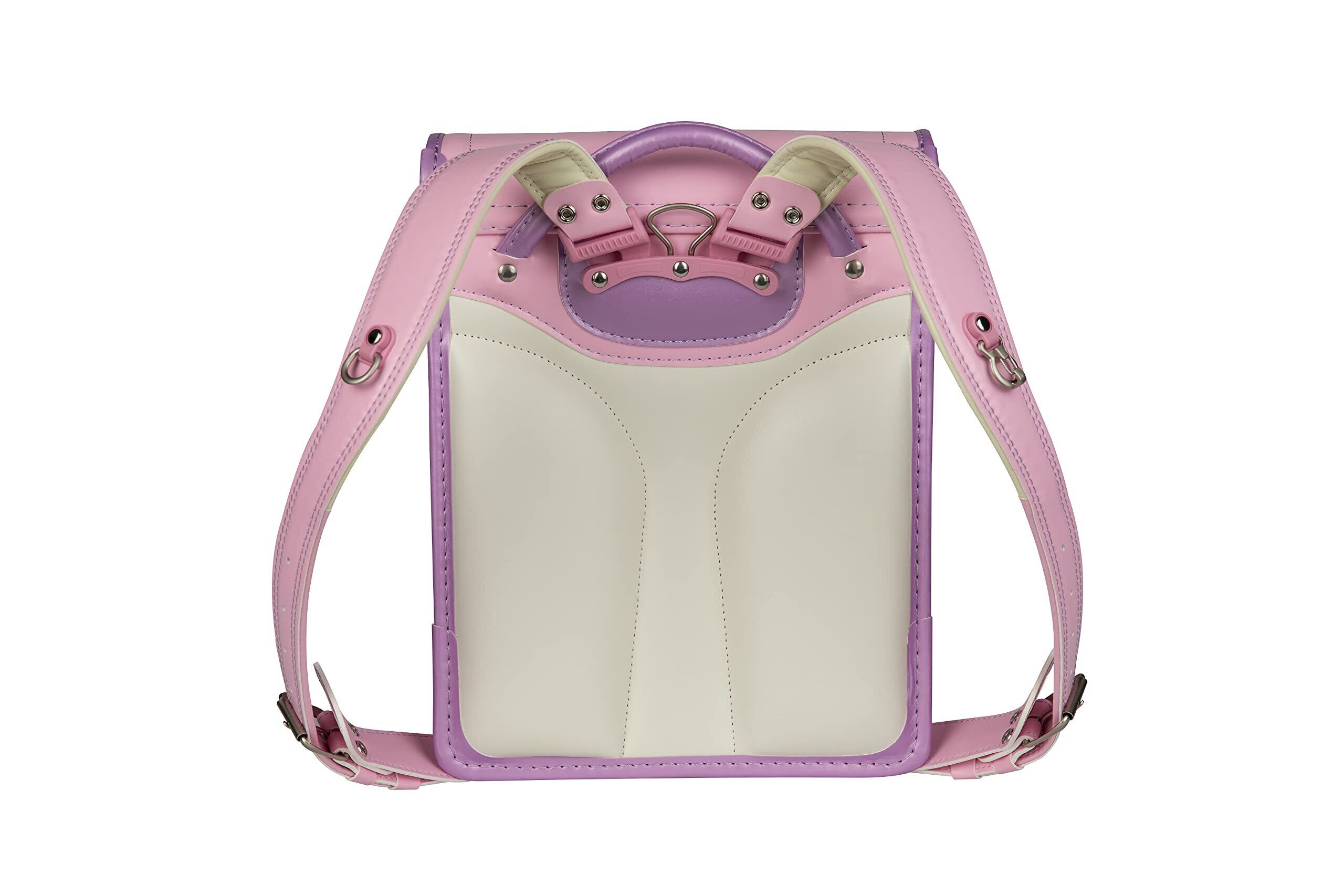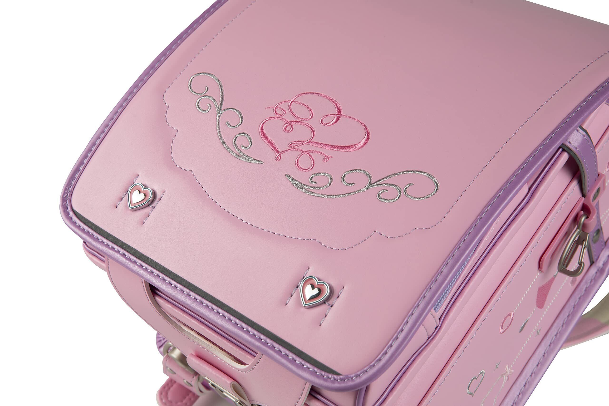 かわいいデザイン、繊細な刺繍、お姫様のような豪華な印象。 見た目コンパクト、でも大容量、A4ファイルがしっかり収納可能。 傷や汚れに強く、軽い素材のクラリーノが使用されており、6年間の使用でもほとんど変わらない風合いを保つ。