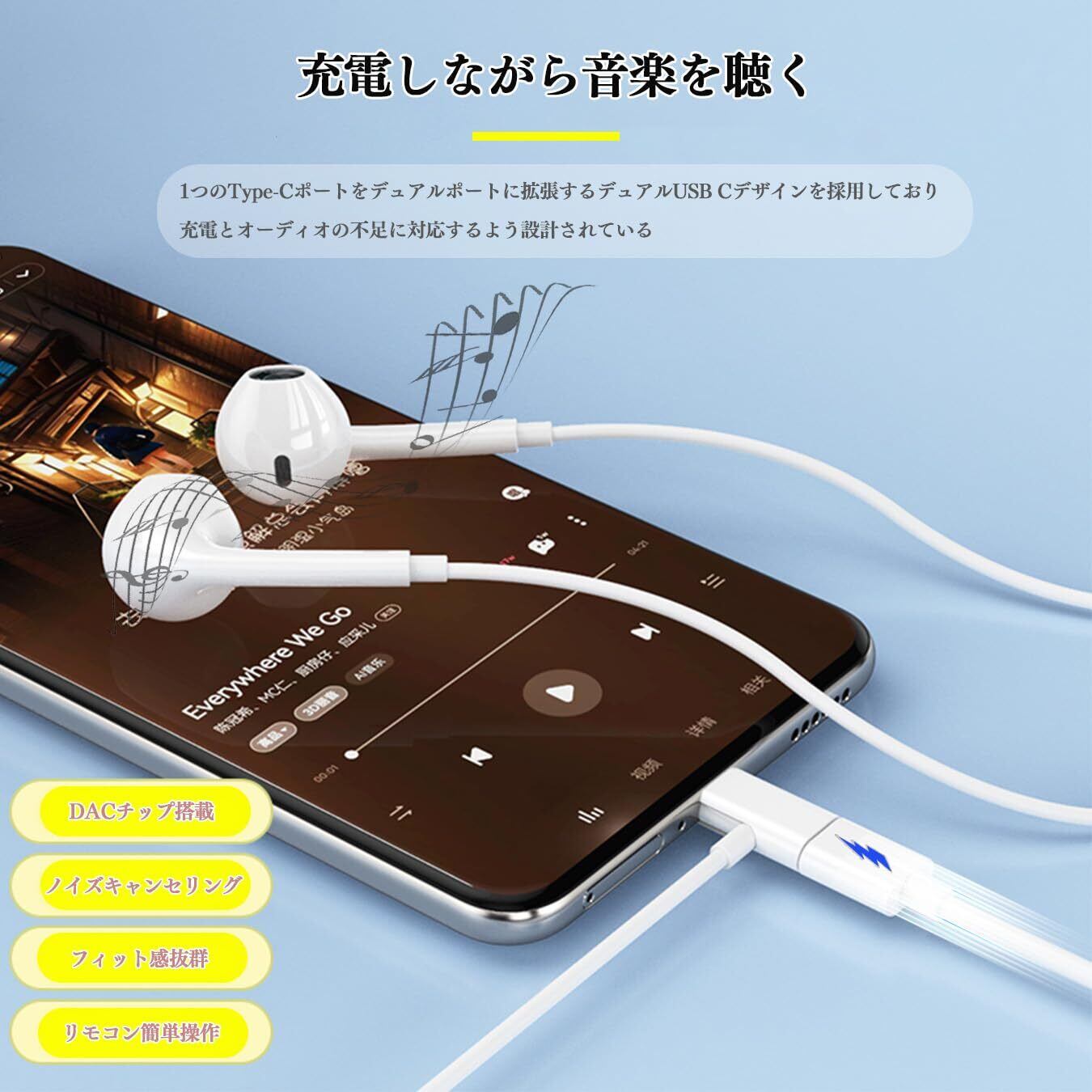 【在庫処分】USB Type C イヤホン 有線 マイク付き 2in1 USB C イヤホン タイプc 急速充電の同時に音楽を聴/音量調整/通話対応 iPhone15/16シリーズ/iPad Pro/Android/Type Cなど機器に適用 (ホワイト)