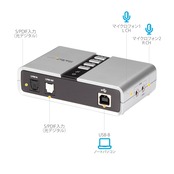 PCのサウンドをアップグレード:ステレオ - 7.1chオーディオ用途でアナログ・デジタル音声出力に対応。デスクトップ/ノートPCに搭載のオーディオ機能をアップグレードできるバスパワーUSBアダプター。1m USBケーブル付属