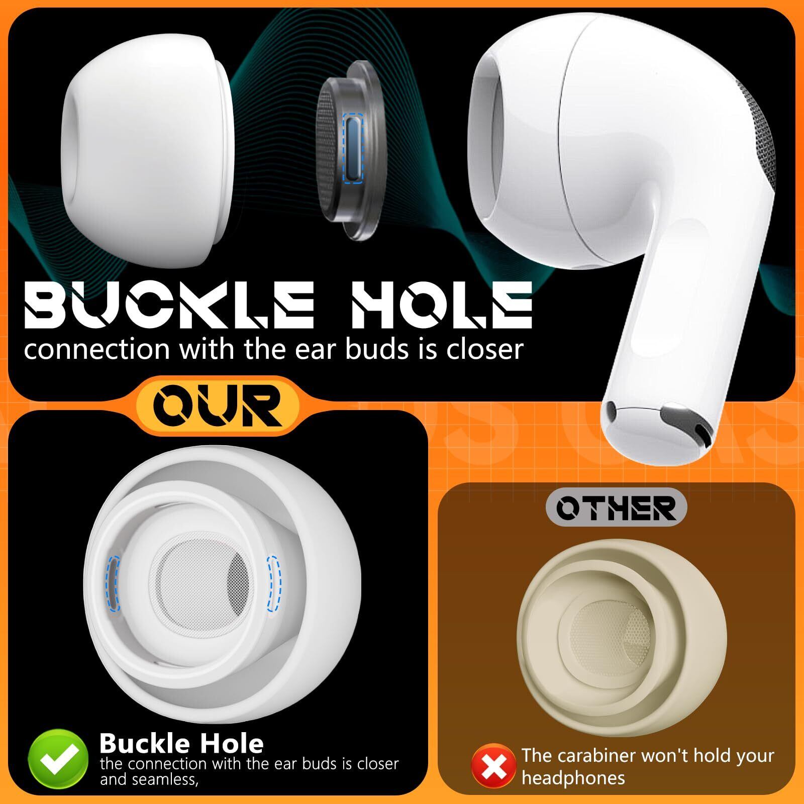 ノイズキャンセリング : Airpods Pro交換用イヤーチップには、側面に2つのノイズリダクション穴があります、元のチップとほぼ同じです(他のシリコンイヤーチップにはありません)。ノイズを低減し、元のヘッドフォンの最高のノイズリダクション効果を維持できます