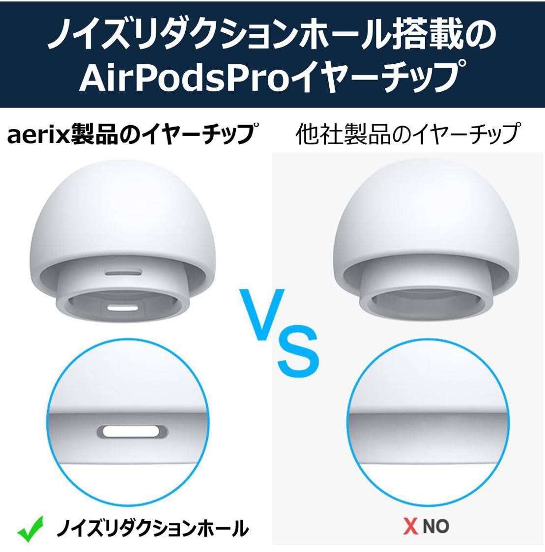 [aerix] イヤーピース AirPods Pro 第1/2世代対応 ノイズリダクションホール付き 柔らかく快適 滑り止め ノイズキャンセリング 耳栓 ソフトシリコン 交換用イヤーチップ 分離可能 遮音 脱落防止6個入り (白, SML各2個合計6個)