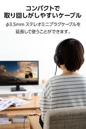 ■φ3.5mmステレオミニプラグケーブルを延長できる、コンパクトで取り回しがしやすいφ3.5mmステレオミニ延長ケーブルです。