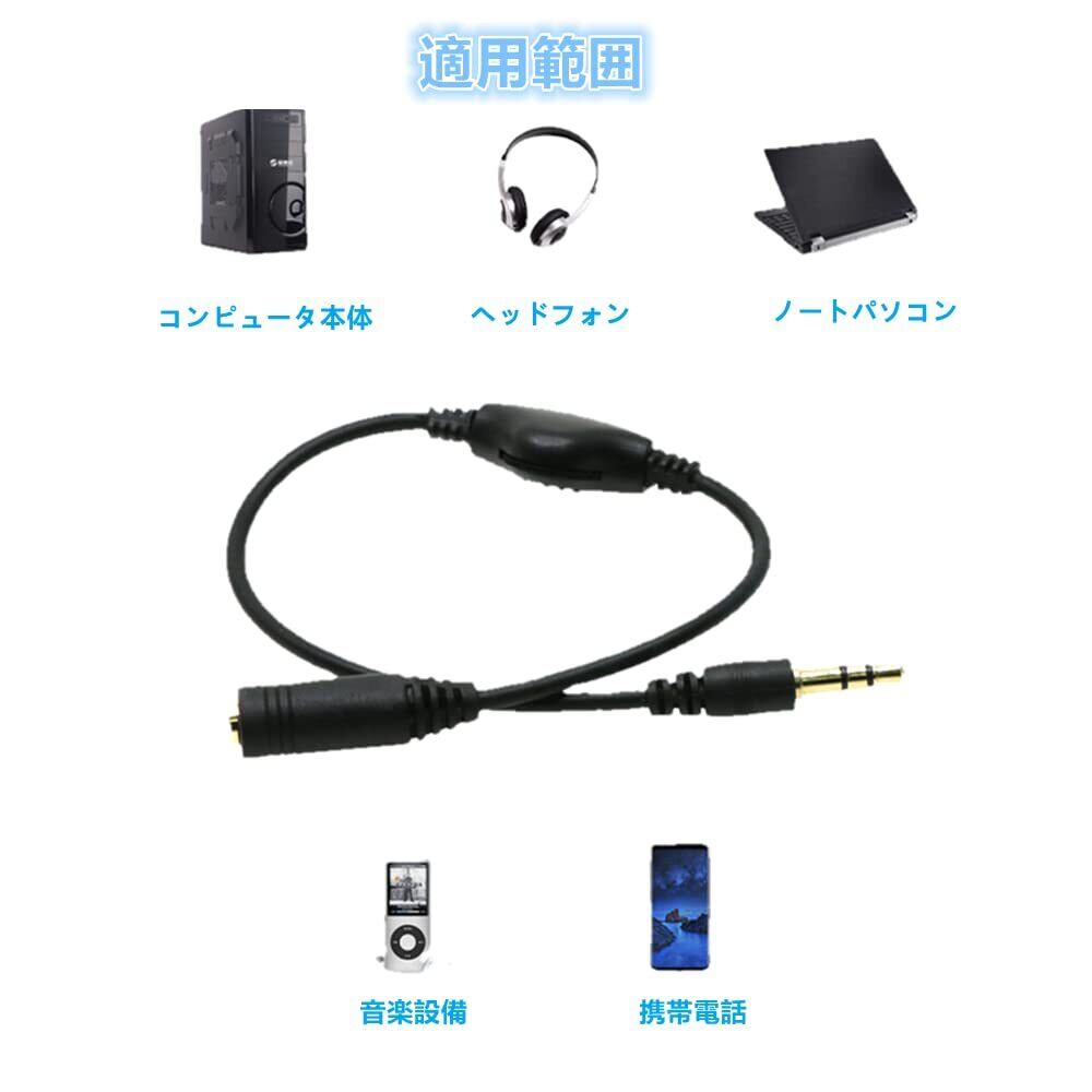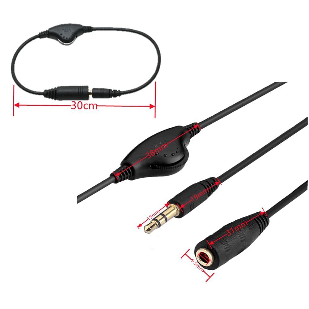 YFFSFDC 3.5mm ヘッドホン延長 ケーブル 30cm ボリューム調節 ダイヤル付 音質劣化防止 イヤホン延長コード オーディオケーブル 2個入り (ブラック)