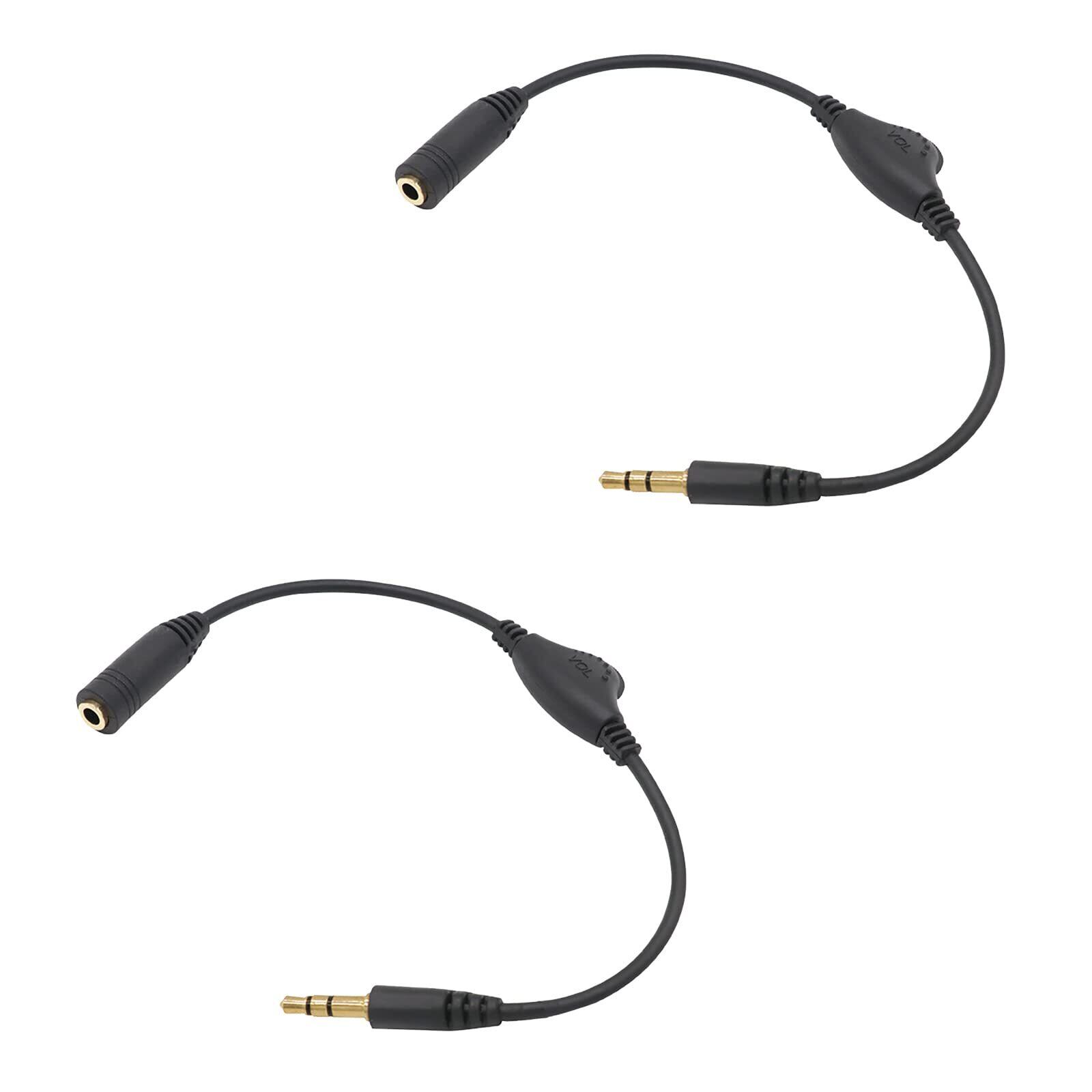 ボリューム調節ケーブル 3.5mmヘッドホン延長ケーブル 25cm イヤホンオーディオ延長コード 3極プラグ ボリュームコントローラー ダイヤル付き 音質劣化防止 2個入り